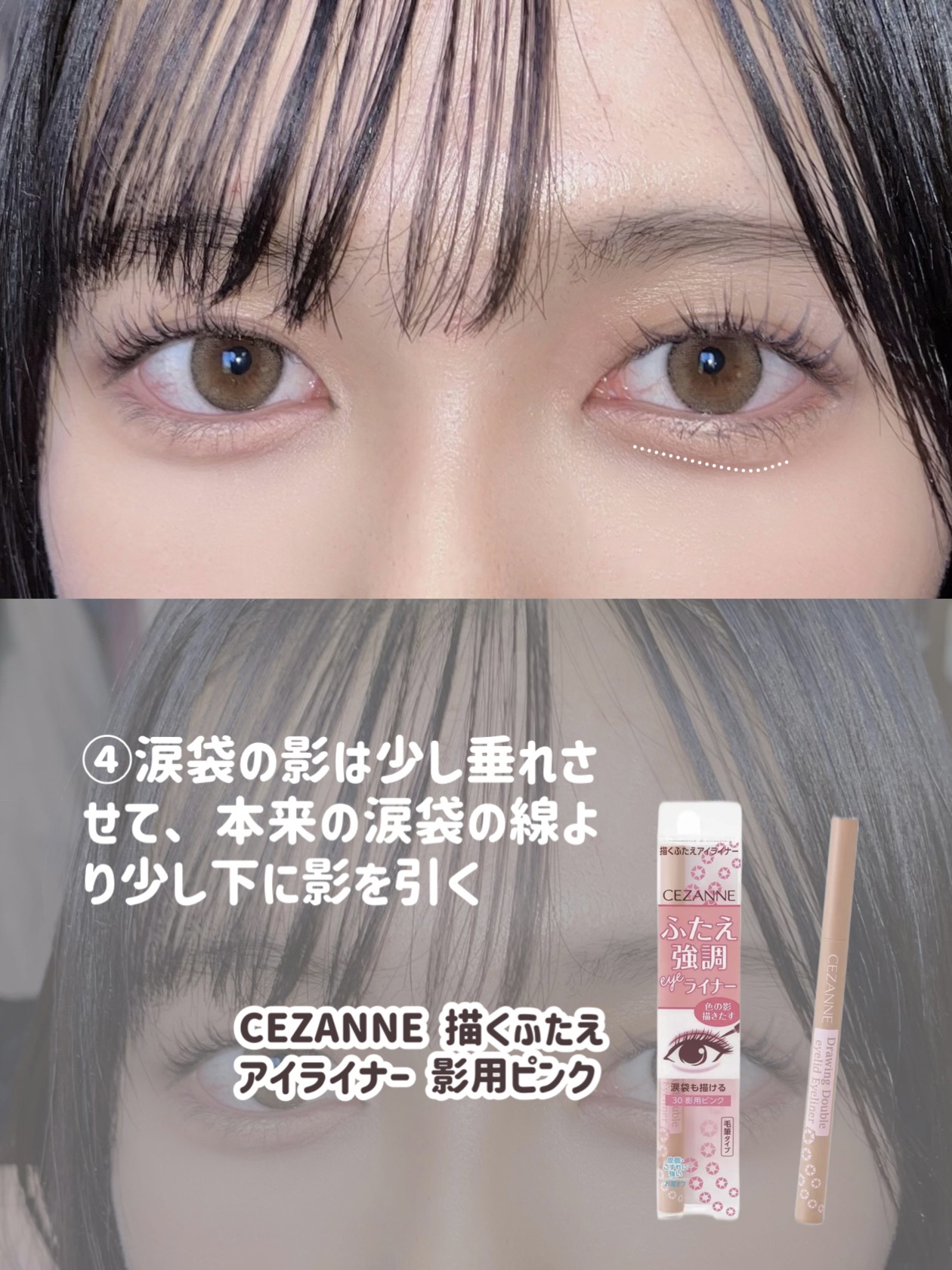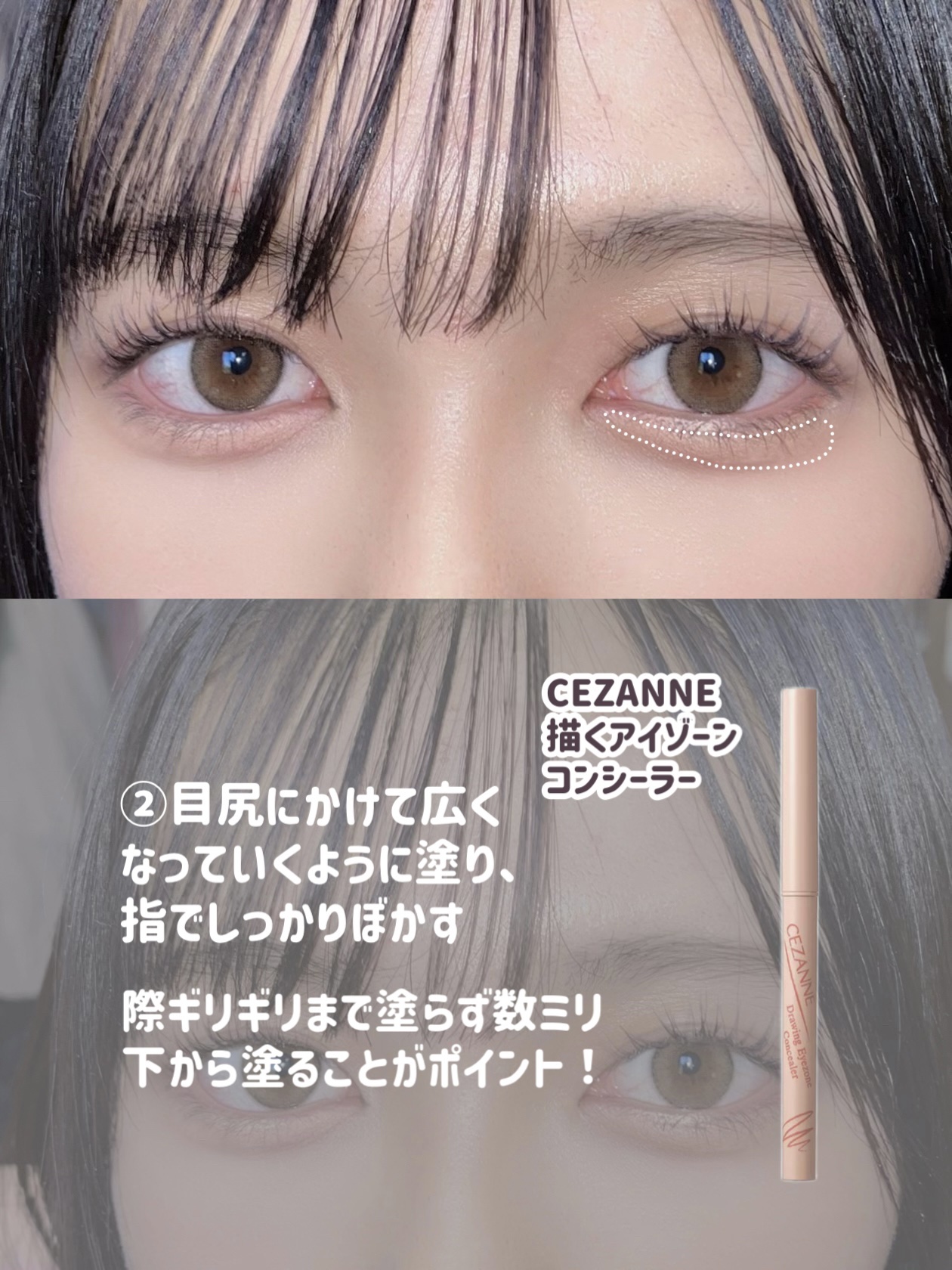 rom&nd ベターザンパレット 01PAMPAS GARDEN キャンメイク アイバッグコンシーラー 02ピンクベージュ CEZANNE ストレッチコンシーラー 30オレンジ系 これどんなに濃いクマも消える◎ やり方は画像を見てください🫶🏻 ラメを使わずに盛りたい時や、あざとく盛りたい時におすすめ!