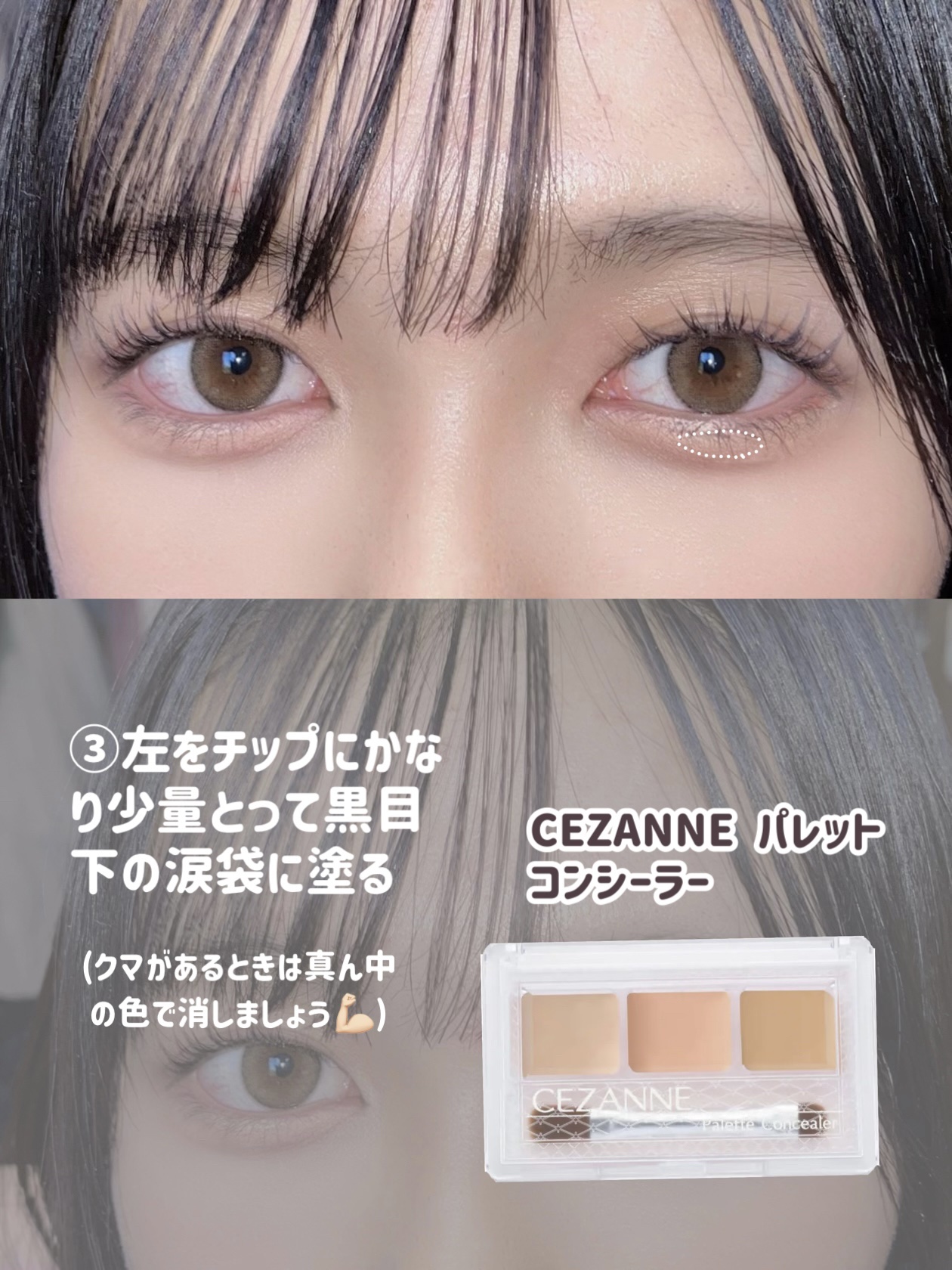 やり方は画像を見てみてください! よりぷっくりさせたい方は、最後にコンシーラーの1番左のカラーを涙袋に塗ると◎ 黄味がかったアイシャドウが似合わない方は01番の方がいいかもしれないです。 ラメを使わない完全マットなので、ナチュラルメイクやスクールメイクにもおすすめ✨
