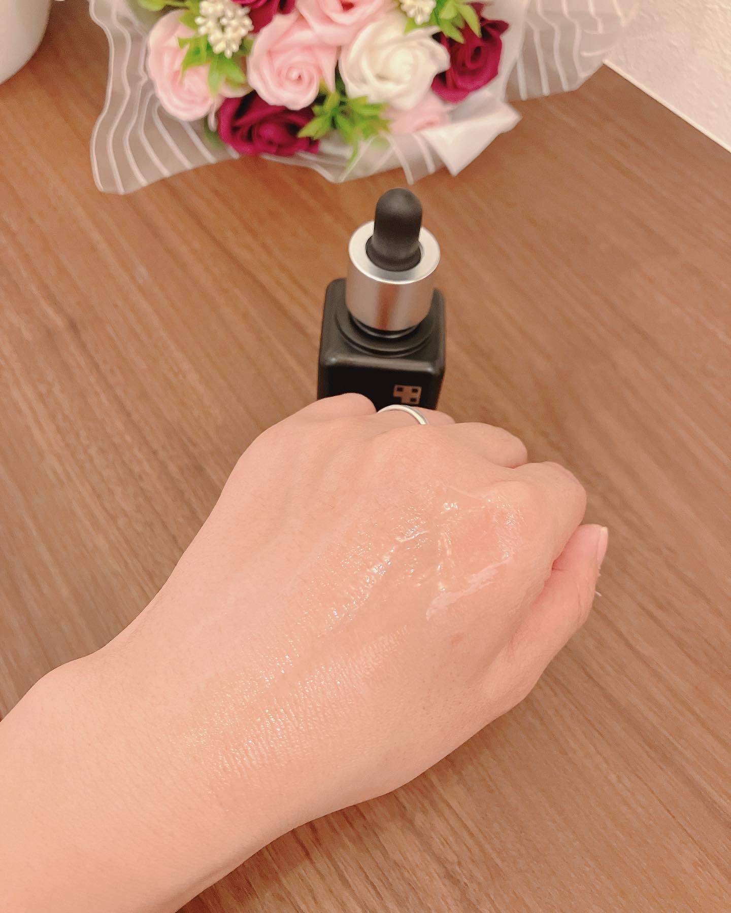 スポイト部分と本体が、別々に入ってくるのはとても良いです!! スポイトは清潔があって 好きです◎ 香りがあるのですが 燻製っぽい香りがあって 少し苦手かなぁ… 香りも付けたあとも 残る感じです。