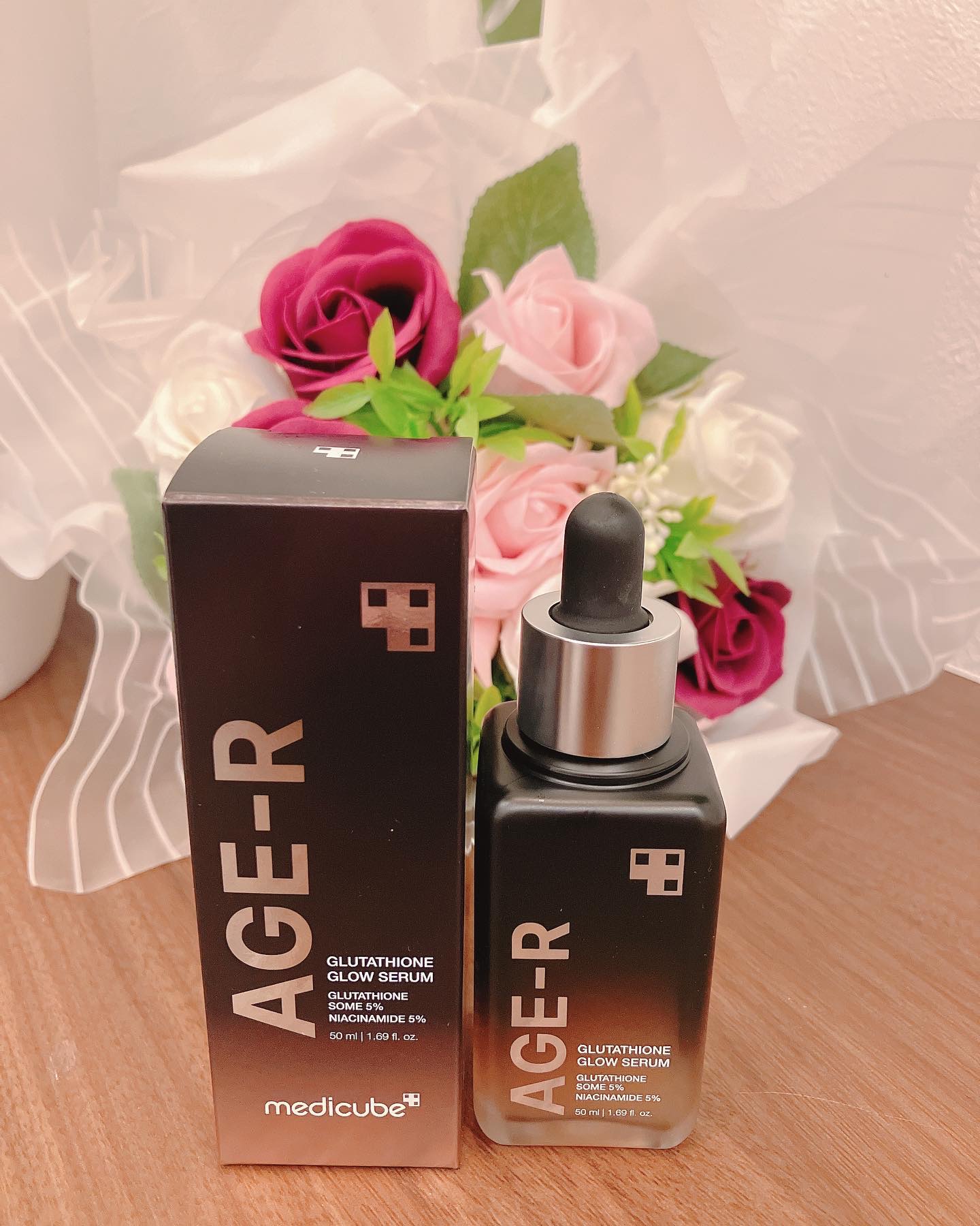 - 高純度99.4%のグルタチオン*を配合し、ハリツヤ肌に導く美容液です。 肌に馴染みやすいリン脂質製のカプセルにグルタチオン成分*を閉じ込め、肌の角質層までうるおいで満たします。 ☑グルタチオンソーム*:50,000ppm ☑ナイアシンアミド* 5%配合 ☑べたつかずしっとりツヤ肌 ☑美顔器AGE-R スキンブースターショットと一緒に使えます 化粧水などでお肌を整えたあと、適量を取り、お肌のキメに沿ってまんべんなく塗った後、やさしくなじませます。 *保湿成分 ■お肌に異常が生じていないかよく注意してご使用ください。化粧品がお肌に合わないとき即ち次のような場合には、使用を中止してください。そのまま使 用を続けますと、症状を悪化させることがありますので、皮膚科専門医等にご相談されることをおすすめします。また、傷やはれもの、しっしん等の異常が ある部位には、ご使用にならないでください。 (1)使用中、赤味、はれ、かゆみ、刺激、色抜け(白斑等)や黒ずみ等の異常があらわれた場合 (2)使用したお肌に、直射日光があたって上記のような異常があらわれた場合 ■目に入らないようご注意ください。目に入ったときは、こすらずにすぐに洗い流してください。その後、目に異物感など異常が残る場合は、眼科専門医へ ご相談されることをおすすめします。 ■極端に高温又は低温の場所、直射日光のあたる場所には保管しないでください。 ■開封後なるべく早めに使用してください。 ■ご使用後はフタをきちんと閉めてください。 ■乳児、子供の手の届かない所に保管してください。