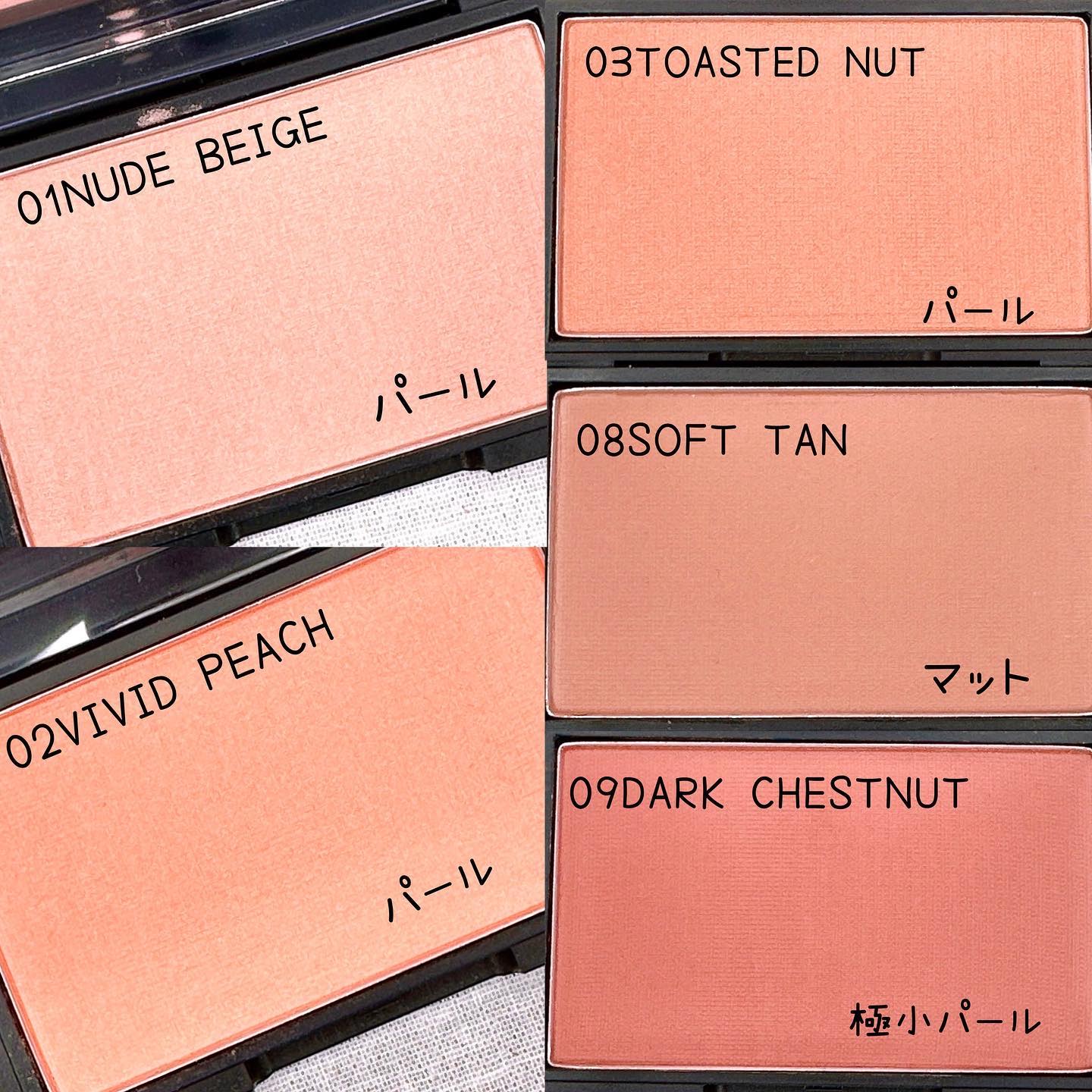 - ヌードベージュ タルク、テトライソステアリン酸ペンタエリスリチル、シクロペンタシロキサン、シリカ、ナイロン-12、酸化亜鉛、ステアリン酸Mg、ワセリン、ジメチコノール、フェノキシエタノール、エチルヘキシルグリセリン、マイカ、酸化チタン、酸化鉄、赤226、酸化スズ ヴィヴィッドピーチ タルク、マイカ、酸化亜鉛、テトライソステアリン酸ペンタエリスリチル、シリカ、ナイロン-12、シクロペンタシロキサン、ステアリン酸Mg、ワセリン、ジメチコノール、フェノキシエタノール、エチルヘキシルグリセリン、酸化チタン、赤226、黄5、酸化鉄、赤202、酸化スズ ロージーピンク タルク、マイカ、テトライソステアリン酸ペンタエリスリチル、シリカ、シクロペンタシロキサン、ナイロン-12、ワセリン、ステアリン酸Mg、ジメチコノール、フェノキシエタノール、エチルヘキシルグリセリン、酸化亜鉛、酸化スズ、酸化チタン、赤226、酸化鉄、黄5、赤202、赤104(1) ダスティローズ タルク、マイカ、酸化亜鉛、テトライソステアリン酸ペンタエリスリチル、シリカ、ナイロン-12、シクロペンタシロキサン、ステアリン酸Mg、ワセリン、ジメチコノール、フェノキシエタノール、エチルヘキシルグリセリン、酸化鉄、赤226、酸化チタン、赤202 ポッピーワイン タルク、マイカ、酸化亜鉛、テトライソステアリン酸ペンタエリスリチル、シリカ、ナイロン-12、シクロペンタシロキサン、ステアリン酸Mg、ワセリン、ジメチコノール、フェノキシエタノール、エチルヘキシルグリセリン、酸化鉄、黄5、赤202、酸化チタン トーステッドナッツ タルク、テトライソステアリン酸ペンタエリスリチル、シクロペンタシロキサン、シリカ、ナイロン-12、酸化亜鉛、ステアリン酸Mg、ワセリン、ジメチコノール、フェノキシエタノール、エチルヘキシルグリセリン、マイカ、酸化チタン、酸化鉄、赤226、赤202、酸化スズ ライトアプリコット タルク、マイカ、テトライソステアリン酸ペンタエリスリチル、シリカ、ナイロン-12、シクロペンタシロキサン、ワセリン、ステアリン酸Mg、ジメチコノール、フェノキシエタノール、エチルヘキシルグリセリン、酸化亜鉛、酸化チタン、酸化鉄、赤226、黄5、酸化スズ ソフトタン タルク、マイカ、シリカ、ナイロン-12、テトライソステアリン酸ペンタエリスリチル、シクロペンタシロキサン、ステアリン酸Mg、ワセリン、ジメチコノール、フェノキシエタノール、エチルヘキシルグリセリン、酸化亜鉛、酸化鉄、赤226 ダークチェスナット タルク、マイカ、ナイロン-12、イソドデカン、フェニルトリメチコン、テトライソステアリン酸ペンタエリスリチル、ワセリン、ジメチコノール、シクロペンタシロキサン、トリメチルシロキシケイ酸、フェノキシエタノール、エチルヘキシルグリセリン、酸化鉄、黄5、赤226、赤202 ハニーベージュ タルク、マイカ、シリカ、ナイロン-12、テトライソステアリン酸ペンタエリスリチル、シクロペンタシロキサン、ステアリン酸Mg、ワセリン、ジメチコノール、フェノキシエタノール、エチルヘキシルグリセリン、酸化チタン、酸化鉄、赤226、酸化スズ サンセットコーラル タルク、シリカ、テトライソステアリン酸ペンタエリスリチル、ナイロン-12、シクロペンタシロキサン、マイカ、ステアリン酸Mg、ワセリン、ジメチコノール、フェノキシエタノール、エチルヘキシルグリセリン、酸化鉄、酸化チタン、赤226、赤202、酸化スズ メイプルブラウン タルク、マイカ、シリカ、テトライソステアリン酸ペンタエリスリチル、ナイロン-12、シクロペンタシロキサン、ステアリン酸Mg、ワセリン、ジメチコノール、フェノキシエタノール、エチルヘキシルグリセリン、酸化鉄、黄5、赤226、赤202 ヴィンテージローズ タルク、マイカ、シリカ、テトライソステアリン酸ペンタエリスリチル、ナイロン-12、シクロペンタシロキサン、ワセリン、ステアリン酸Mg、ジメチコノール、フェノキシエタノール、エチルヘキシルグリセリン、酸化鉄、赤226、赤202、黄5 スターリーヴァイオレット マイカ、タルク、テトライソステアリン酸ペンタエリスリチル、シリカ、シクロペンタシロキサン、ナイロン-12、ワセリン、ジメチコノール、ステアリン酸Mg、フェノキシエタノール、エチルヘキシルグリセリン、酸化スズ、酸化チタン、酸化鉄、赤226、赤202 シナモンブラウン タルク、マイカ、シリカ、テトライソステアリン酸ペンタエリスリチル、ナイロン-12、シクロペンタシロキサン、ステアリン酸Mg、ワセリン、ジメチコノール、フェノキシエタノール、エチルヘキシルグリセリン、黄4、酸化チタン、酸化鉄、黄5