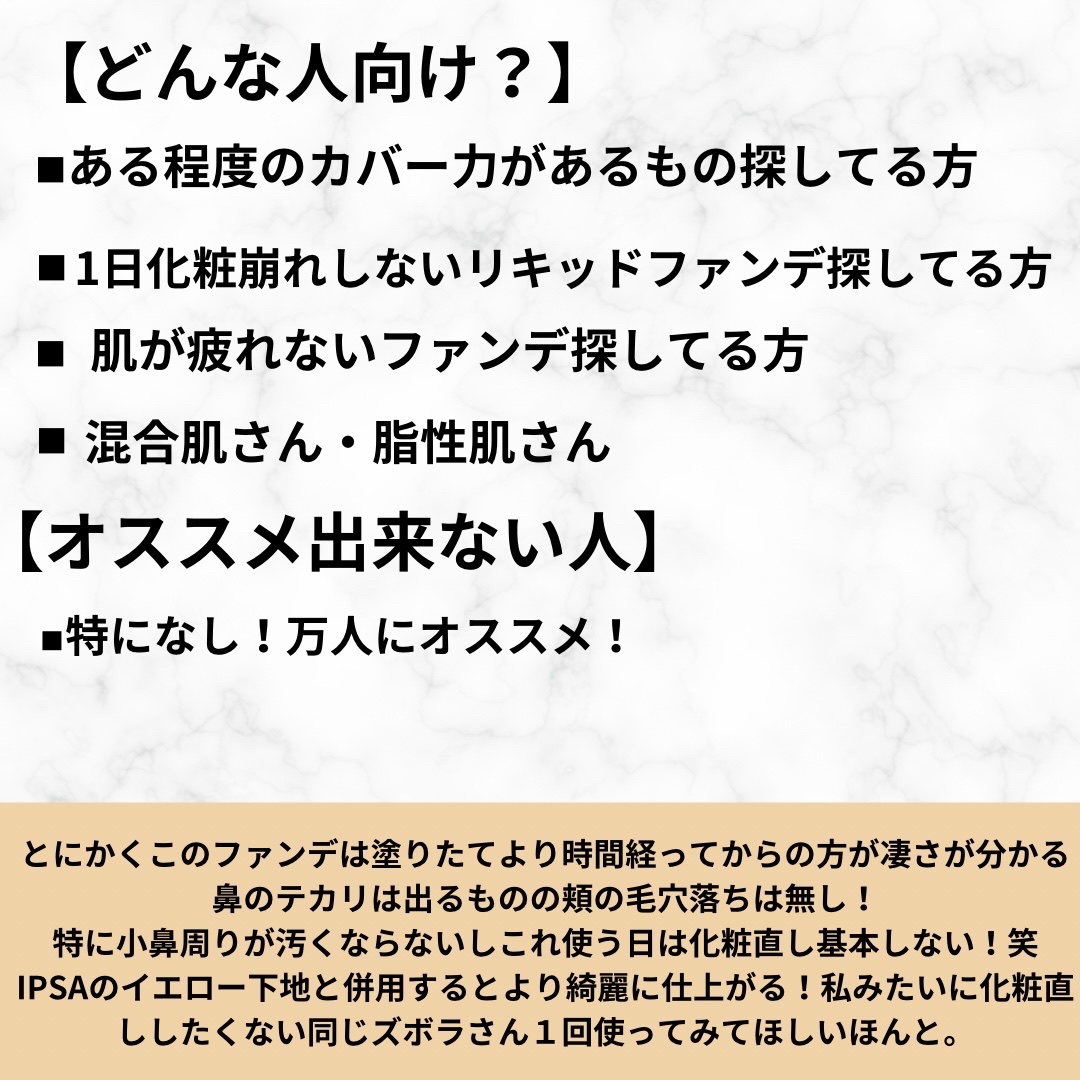 | ファンデーションランキング第11位 | テクスチャーは少しとろみがありますが、とても滑らかで、スルスルと塗り広げられます | 詳細を見る | |
