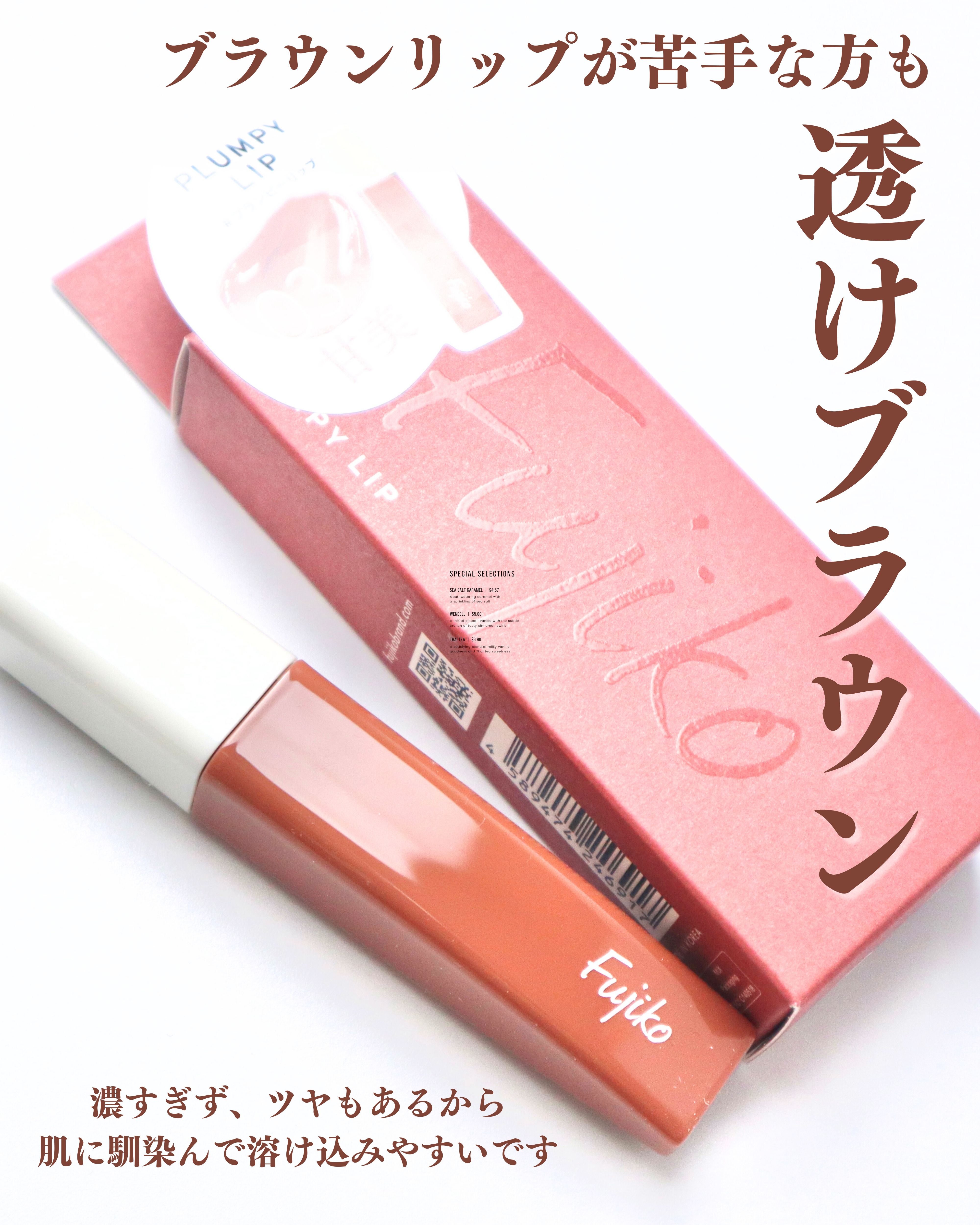- フジコの新リップは、重ねるほどにパーンと膨んでみえるプランプティント*1。 ぷっくりと存在感のあるリップメイクで唇を主役に。 <プランプ成分(清涼成分)> "メントキシプロパンジオール”採用。 血色感、ボリューム感、クーリング感を演出します。 <オイルウォーターティント処方> 軽やかなオイルが唇に均一に伸び広がり、 FIXING。 時間が経ってもボリューム感と光沢感を演出。 しかもティントだから“落ちにくい”(*2)。 <5種の美容保湿成分配合> アルガンオイル・ツバキ種子油・アーモンド油 ティーツリー葉油・ハチミツエキス *1全てメイクアップ効果 *2効果・効能には個人差があります。