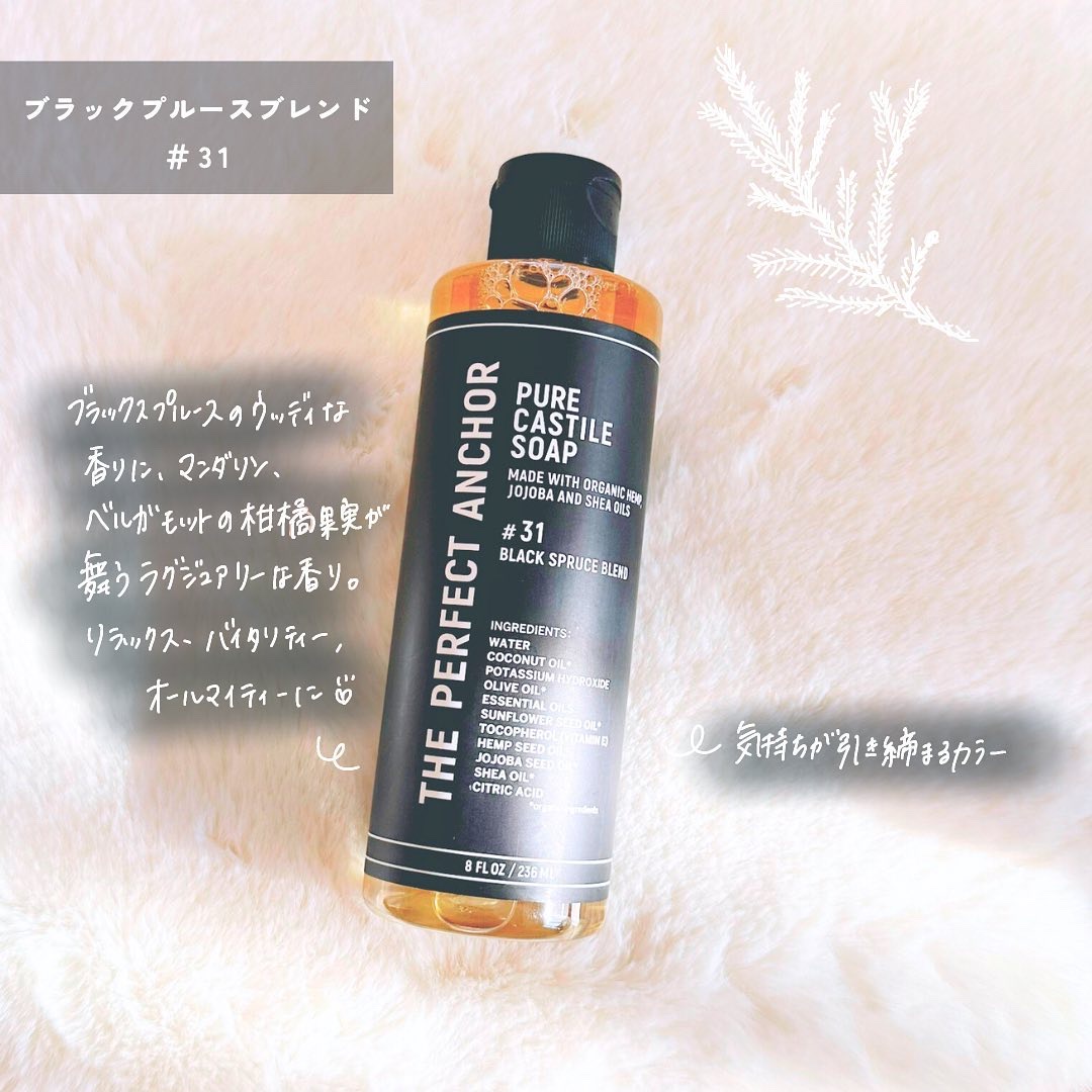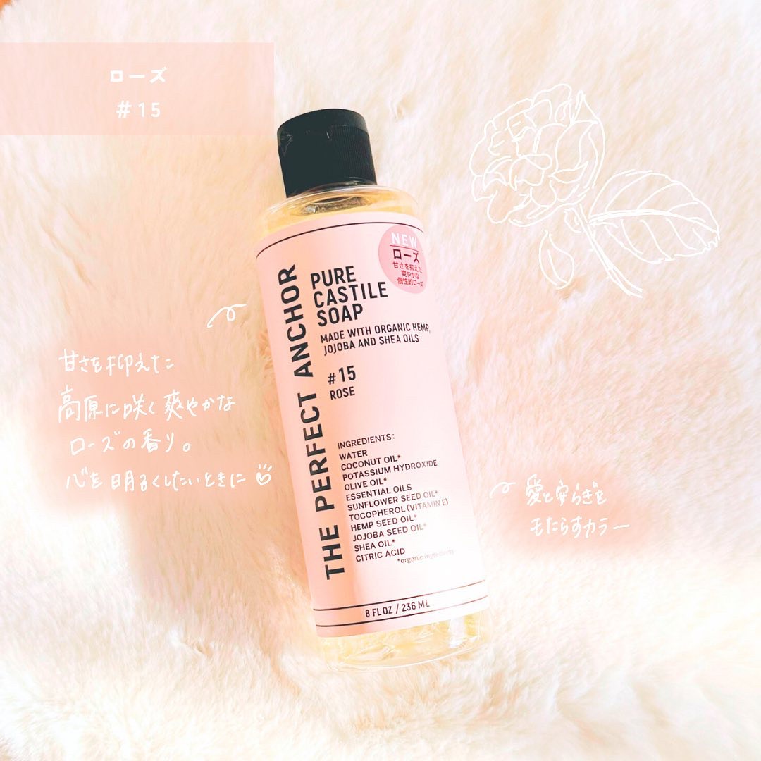 ザ・パーフェクトアンカー ピュア カスチールソープは、 100%天然・無添加でオレゴンティルス認定の米国製オーガニックソープ🫧 これ1本で、洗顔、クレンジング、ボディ洗浄に使えるのびっくりです‼️ 香りは、合成香料ではなくエッセンシャルオイルだけを使用しているので、毎日の洗顔や入浴の時間が、特別なアロマセラピータイムにもなるよ💕✨