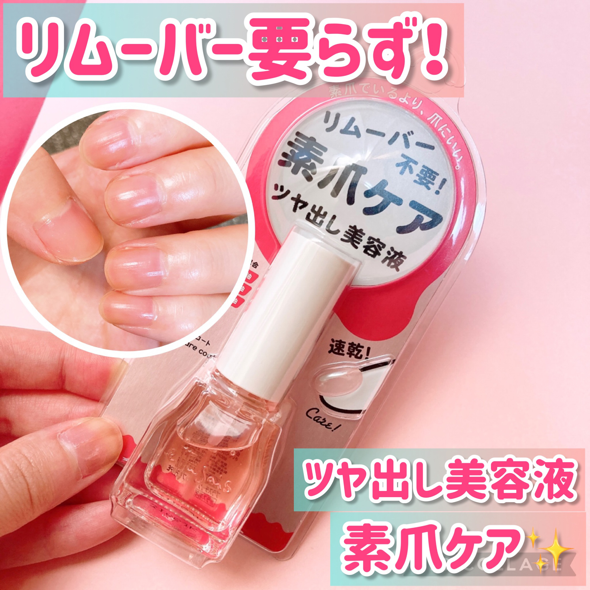 1度塗りで自然なツヤが出て、爪を補強してくれます。 乾燥による縦線が消えて素爪が綺麗に見えるので、とても良いです。 リムーバー不要なのも嬉しいポイントです♡ 2〜3日でツヤが無くなってくるのでその度に塗り重ねていますが、速乾なので塗る作業が苦にならないです。 仕上がりがナチュラルなので、職場や学校がマニキュアNGな方にピッタリな商品だと思います!