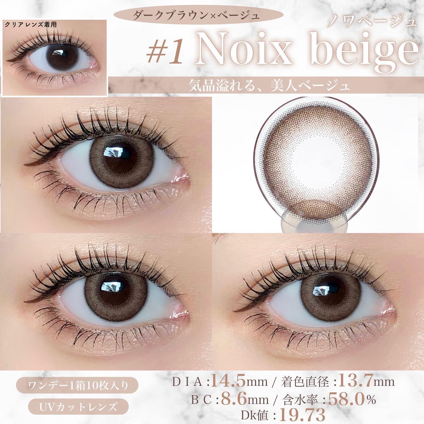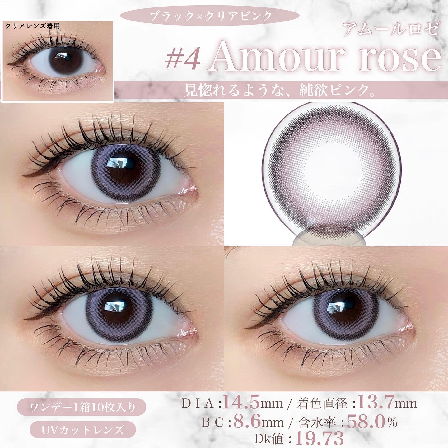 - キュプリエは“派手過ぎず上品な発色なのに、しっかり盛れるサイズ感”にこだわった、大人の女性のためのカラコン。 付けるだけで華やかな印象になり、女性も男性も魅了する、魔性の瞳に。 メイクやファッションに合わせて色んな変化を楽しめる4つのカラーバリエーションで、 デートや、女子会、お仕事などさまざまなシチュエーションに合わせてお使い頂けます。 カラーコンタクトレンズの不適正使用による眼障害の危険性等などがあります。 ●コンタクトレンズは高度管理医療機器です。不十分な洗浄・消毒など不適切なケアや、長時間・交換期間を超えた装用により、アレルギー性結膜炎、角膜感染症、角膜潰瘍等の重篤な眼障害が発生する危険性があります ●ご使用前に取扱説明書を確認してください 使用上の留意事項 ●眼科医院等を受診してからお求めください ●眼に異常を感じたら直ちにレンズ使用を中止し、お近くの眼科等で診察を受けてください ●医師の指示にしたがってご使用ください ●コンタクトレンズを装用する場合、自覚症状がなくても、眼科医院等での定期検査を受けてください ●レンズに不具合がある場合は使用しないでください