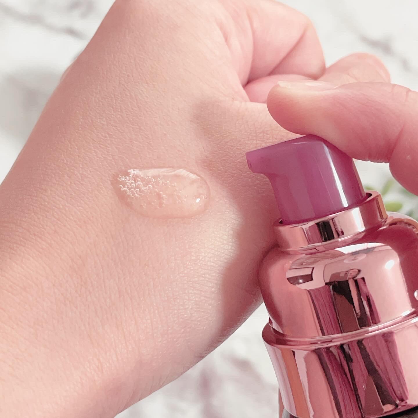 美容液と言うよりは乳液か、クリーム寄りのテクスチャーです。1プッシュ出してみてもこっくりした感じ。手に取って肌になじませてみたところとっても伸びがよいです。べたつくことがなくさらっとしていました!化粧水の後にこの美容液、となっていましたがク...
