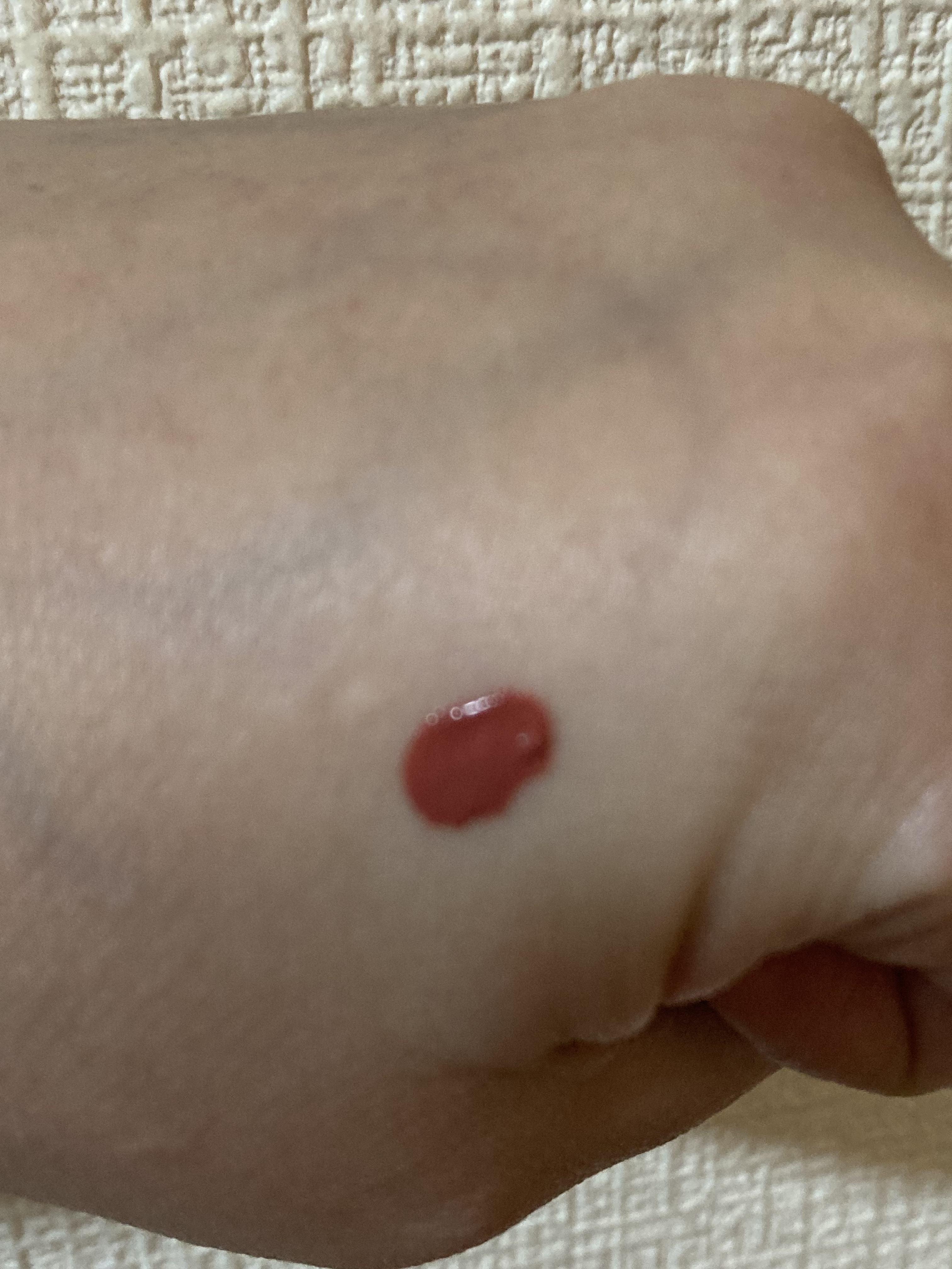 ダイソーの進化が止まらない..!! 深みレッドテイントがイエベ秋優勝!🧸🍒 赤に1滴ピンクと白を混ぜたようなクリーミーなカラーが110円とは思えないカラー! めちゃくちゃ色残りするのが驚き...!!! 100均の進化すごい.....