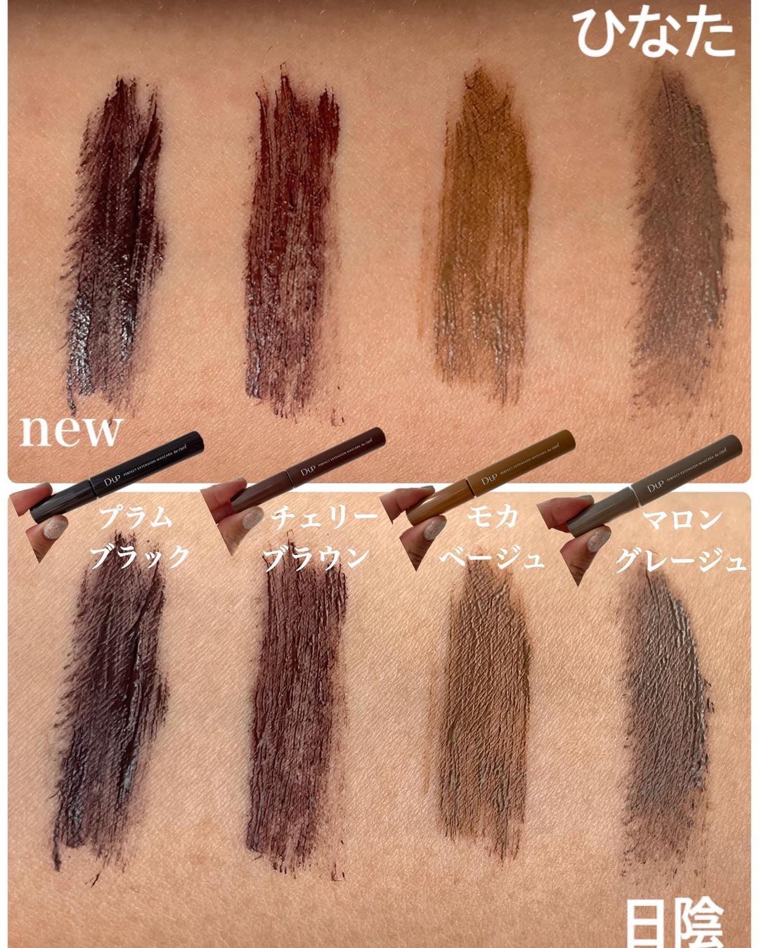 - ずっと上向きまつげ”ふんわりカール”。 まつげにするする絡んでダマにならず、ふんわり上向きまつげを長時間キープ!「お湯+洗顔料」で簡単オフできる、新カールマスカラ。1本1本、根元から美しくセパレートできる、日本人の目幅に合わせた設計幅25.5mmのコンパクトブラシ採用。 ●ブラック ●チェリーブラウン(2021/8/1 全国発売) ほんのり赤みが絶妙なおしゃれカラー。目元をきちんと引締めながら、優しい印象に演出します。 肌なじみ抜群で、シャドウや肌色問わず使いやすい。 ●キャラメルブラウン(2021/12/1 マツモトキヨシ・ココカラファイン・PLAZA・MiNIPLA・LOFTで発売) 顔全体が明るく見えるキャラメル系ブラウン。 ふわっと軽い抜け感で、存在感のある目元を演出する、「盛れる抜け感」を叶えるカラーです。 ●新色【ルビーブラウン】(2022年1月24日発売) 「ほのかに透ける"くすみピンク"」 甘すぎないピンクが濃くなりすぎず、優しい色気を演出。 まばたきする度感じる、上品なピンクニュアンス。 ●マロングレージュ (2022年10月9日発売) ブラックより軽く、ブラウンより洒落る“大人カラー” まつげの存在感を柔らかく際立てる絶妙な発色 ●新色【ピンクブラウン】(2023年2月10日発売) 「ほのかに甘い"優しいピンク"」 ミルクチョコレートのようにまろやかな発色。 “ブラウンベース”で目元に馴染みながらまつげが際立つ。 ●新色【モカベージュ】(2023年4月21日発売) 王道のブラウンよりも“柔らかな存在感 生まれつきの茶色い自まつげを思わせる自然な色づき。 顔から浮かずに盛れる、彩度低めの発色です。 ●新色【プラムブラック】(2023年10月1日発売) ただの黒じゃない。パープルが潜むニュアンスブラック ふとした瞬間に感じる”甘さ”が色っぽい 盛れるのにお洒落、新しい黒マスカラ ※店舗によりお取り扱いが無い場合や、販売開始日が異なる場合がございます。取扱い状況につきましては、お近くの店舗までお問い合わせいただくとスムーズです。