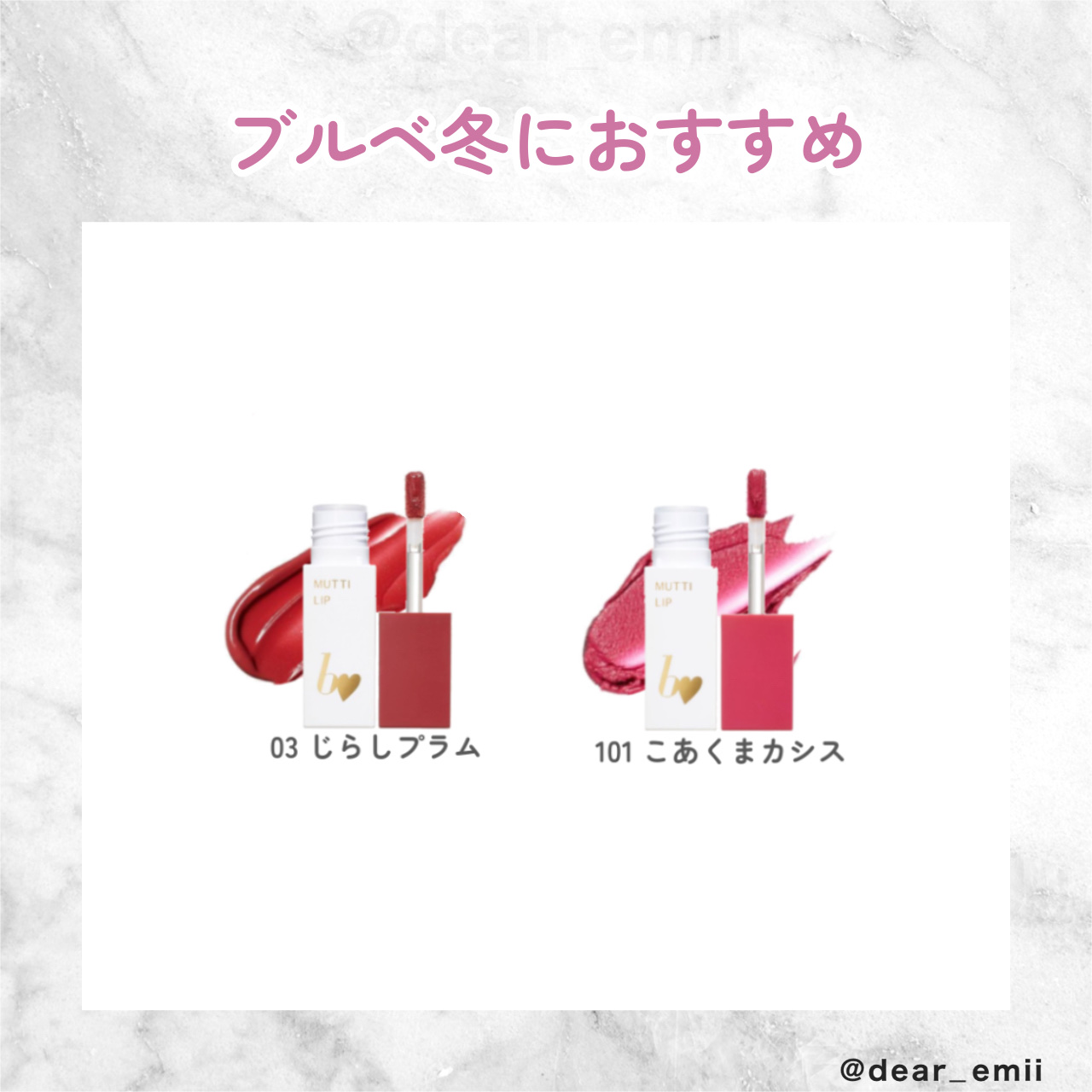 - <01 こっそりピンク> ジメチコン、シクロペンタシロキサン、イソドデカン、(ジメチコン/ビニルジメチコン)クロスポリマー、ジメチコンクロスポリマー、(ビニルジメチコン/メチコンシルセスキオキサン)クロスポリマー、酸化チタン、トリイソステアリン酸ポリグリセリル-2、トリメチルシロキシケイ酸、リンゴ酸ジイソステアリル、1,2-ヘキサンジオール、酢酸トコフェロール、PEG-10ジメチコン、酸化鉄、シクロヘキサシロキサン、ジステアルジモニウムヘクトライト、黄4、エチルヘキシルグリセリン、炭酸プロピレン、赤202、トリエトキシカプリリルシラン、コメヌカ油、カニナバラ果実油、水、トコフェロール、ヒアルロン酸Na <02 ふいうちレッド> ジメチコン、シクロペンタシロキサン、イソドデカン、(ジメチコン/ビニルジメチコン)クロスポリマー、ジメチコンクロスポリマー、(ビニルジメチコン/メチコンシルセスキオキサン)クロスポリマー、トリイソステアリン酸ポリグリセリル-2、酸化鉄、トリメチルシロキシケイ酸、酸化チタン、リンゴ酸ジイソステアリル、1,2-ヘキサンジオール、酢酸トコフェロール、PEG-10ジメチコン、シクロヘキサシロキサン、ジステアルジモニウムヘクトライト、エチルヘキシルグリセリン、黄4、炭酸プロピレン、赤202、トリエトキシカプリリルシラン、コメヌカ油、カニナバラ果実油、水、トコフェロール、ヒアルロン酸Na <03 じらしプラム> ジメチコン、シクロペンタシロキサン、イソドデカン、(ジメチコン/ビニルジメチコン)クロスポリマー、ジメチコンクロスポリマー、トリメチルシロキシケイ酸、トリイソステアリン酸ポリグリセリル-2、(ビニルジメチコン/メチコンシルセスキオキサン)クロスポリマー、酸化チタン、酸化鉄、リンゴ酸ジイソステアリル、1,2-ヘキサンジオール、酢酸トコフェロール、PEG-10ジメチコン、シクロヘキサシロキサン、赤202、エチルヘキシルグリセリン、黄4、ジステアルジモニウムヘクトライト、炭酸プロピレン、トリエトキシカプリリルシラン、コメヌカ油、カニナバラ果実油、水、トコフェロール、ヒアルロン酸Na <04 ほろよいピンク> ジメチコン、シクロペンタシロキサン、(ジメチコン/ビニルジメチコン)クロスポリマー、イソドデカン、ジメチコンクロスポリマー、(ビニルジメチコン/メチコンシルセスキオキサン)クロスポリマー、酸化チタン、リンゴ酸ジイソステアリル、トリメチルシロキシケイ酸、トリイソステアリン酸ポリグリセリル-2、酢酸トコフェロール、酸化鉄、PEG-10ジメチコン、1,2-ヘキサンジオール、ジステアルジモニウムヘクトライト、シクロヘキサシロキサン、エチルヘキシルグリセリン、黄4、炭酸プロピレン、赤202、トリエトキシカプリリルシラン、コメヌカ油、カニナバラ果実油、水、トコフェロール、ヒアルロン酸Na <101 こあくまカシス> ジメチコン、シクロペンタシロキサン、イソドデカン、(ジメチコン/ビニルジメチコン)クロスポリマー、ジメチコンクロスポリマー、(ビニルジメチコン/メチコンシルセスキオキサン)クロスポリマー、トリイソステアリン酸ポリグリセリル-2、酸化チタン、トリメチルシロキシケイ酸、1,2-ヘキサンジオール、PEG-10ジメチコン、酢酸トコフェロール、赤202、ジステアルジモニウムヘクトライト、シクロヘキサシロキサン、エチルヘキシルグリセリン、酸化鉄、黄4、炭酸プロピレン、青1、コメヌカ油、カニナバラ果実油、水、トコフェロール、ヒアルロン酸Na <102 うばわれローズ> ジメチコン、シクロペンタシロキサン、イソドデカン、ジメチコン/ビニルジメチコン/クロスポリマー、ジメチコンクロスポリマー、ビニルジメチコン /メチコンシルセスキオキサンクロスポリマー、トリイソステアリン酸ポリグリセリル-2、酸化チタン、トリメチルシロキシケイ酸、酸化鉄、1,2-ヘキサンジオール、PE G-10ジメチコン、酢酸トコフェロール、ジステアルジモニウムヘクトライト、シクロヘキサシロキサン、エチルヘキシルグリセリン、炭酸プロピレン、赤202、カニナバラ 果実油、コメヌカ油、水、トコフェロール、ヒアルロン酸Na <103 はじまりピンク(限定)> ジメチコン、シクロペンタシロキサン、イソドデカン、(ジメチコン/ビニルジメチコン)クロスポリマー、ジメチコンクロスポリマー、(ビニルジメチコン/メチコンシルセスキオキサン)クロスポリマー、トリイソステアリン酸ポリグリセリル-2、酸化チタン、トリメチルシロキシケイ酸、1,2-ヘキサンジオール、PEG-10ジメチコン、酢酸トコフェロール、シクロヘキサシロキサン、ジステアルジモニウムヘクトライト、酸化鉄、エチルヘキシルグリセリン、黄4、炭酸プロピレン、赤202、コメヌカ油、カニナバラ果実油、水、トコフェロール、ヒアルロン酸Na <05 きづいてテラコッタ> ジメチコン、シクロペンタシロキサン、イソドデカン、(ジメチコン/ビニルジメチコン)クロスポリマー、ジメチコンクロスポリマー、(ビニルジメチコン/メチコンシルセスキオ