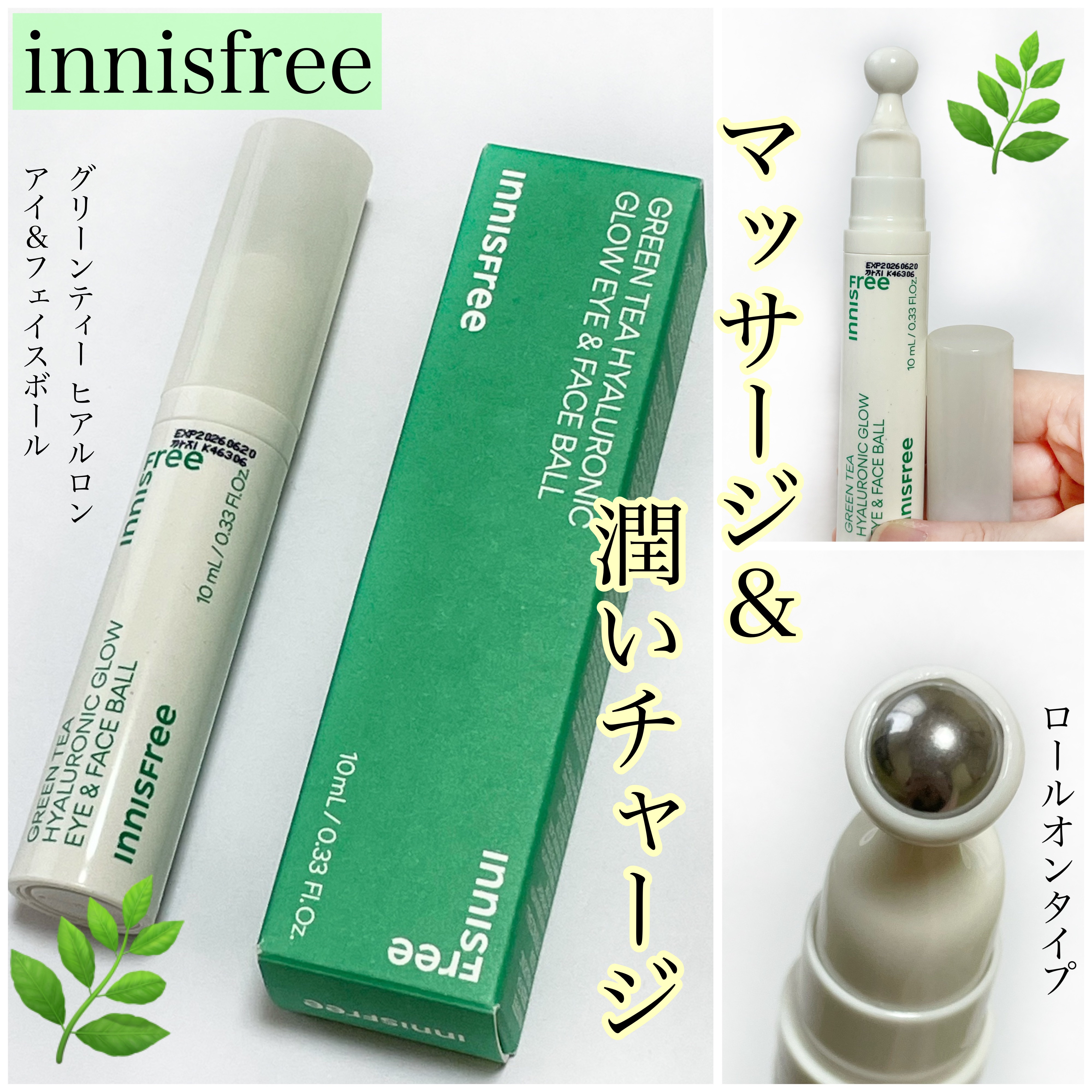 こちらもメガ割🥰購入✨️innisfreeよりグリーンティー ヒアルロン アイ&フェイスボールコロコロ転がすアイケア用品は結構あるけど、たまに皮膚がよれたりはさまったりすることもあり😅普段は使ってませんでしたが、こちらはストレスなく使えて◎思...
