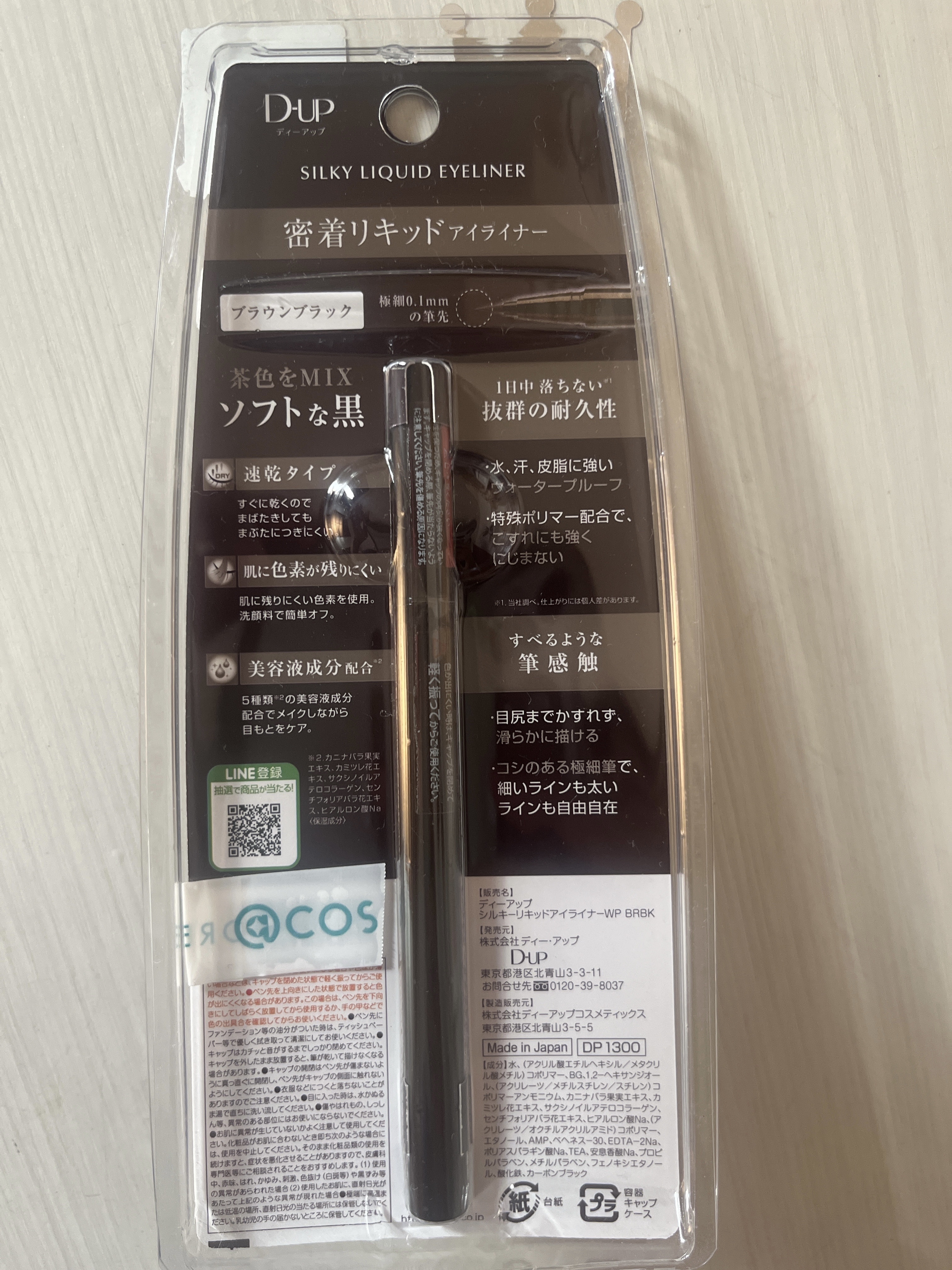 秋冬におすすめ!D-UPのブラウンブラックアイライナーのご紹介です!D-UPシルキーリキッドアイライナーWPBRBKブラウンブラック¥1,430いつも愛用しているD-UPのアイライナー!今1番お気に入りのカラーです!良かったところ⭐️•描きや...
