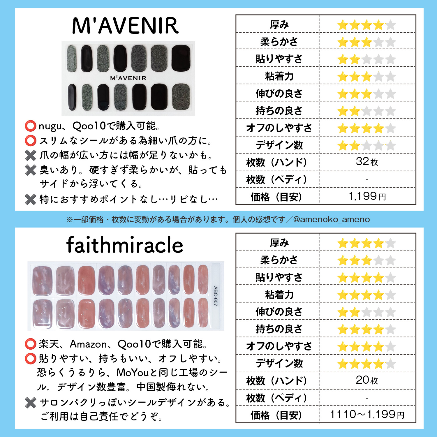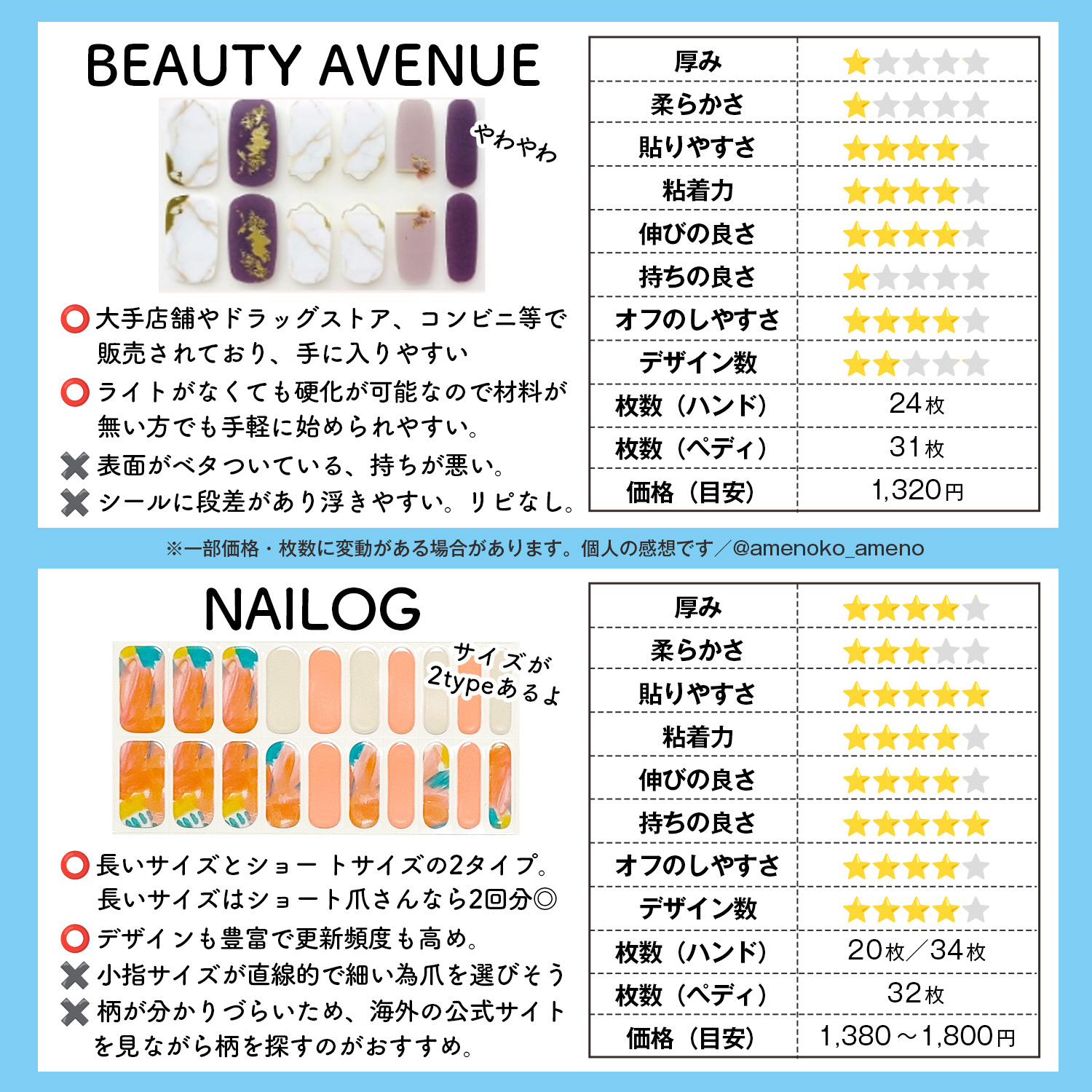 🩷ohora(オホーラ)一番使いやすいシールはやはりココ!柔らかさや貼り心地、デザイン数など他のメーカーとは比べられません。 🩷DASHING DIVA(ダッシングディバ)第二の大手?といえばここかな?ダッシングディバさんは硬化タイプのネイルシール(glaze)とは別に、非硬化タイプのネイルシール(GLOW)、ネイルチップ(マジックプレス)があります。 🩷7nana(ナナ)ここ最近で大好きなメーカー。ナナさんはネイルサロンで施術してもらったようなニュアンス系ネイルやちょっと変わったデザイン性のあるネイルが好きな方におすすめ!