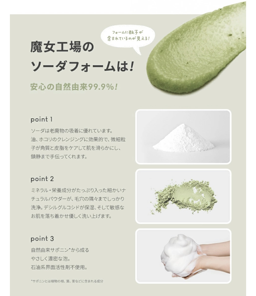 - 肌にうるおいを与えながら、毛穴汚れを落とす洗顔料 ミネラルを豊富に含む珪藻土とトウモロコシ、ソーダパウダーが含有され、毛穴の老廃物を優しくディープクレンジング。42種類の天然由来の洗浄成分と保湿成分で肌に負担をかけず、つっぱることなくしっとり洗い上げる低刺激洗顔料です。