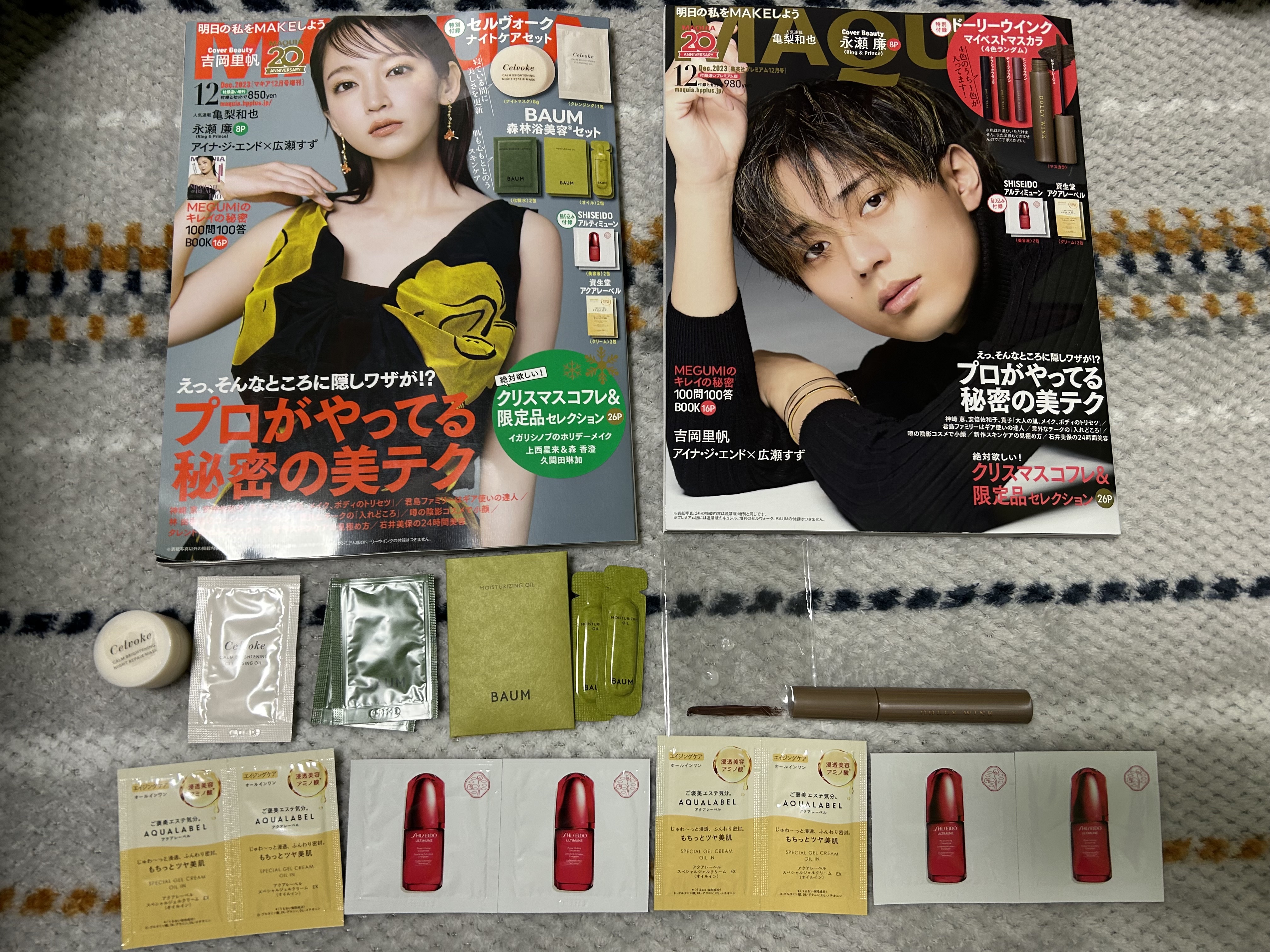 ロート製薬のリップ4種類:リップザカラーのキャメルブラウン、予想以上に気に入りました💖 TONE my LIPは廃盤らしいですが、リップクリーム代わりに使えるし、デザインも可愛くて大満足でした♪ 白潤と極潤PREMIUM:30代前後は長い間白潤にお世話になっていました。 CNP ラボラトリークッションファンデーション(本体&レフィル):CNP ラボラトリーの美容液が入ったクッションファンデみたい。 クッションファンデーションは使用期限も短いし、こまめに使えばすぐに使い切るので、レフィル付きは便利ですね🌈 hemeは初めまして😘 台湾コスメなのかな❓ 可愛くてプチプラ❣️ チークはトーステッドナッツ、アイシャドウはブラウンティーが入っていました。 チークは鏡付き、アイシャドウはブラシが付いていて嬉しい🎵