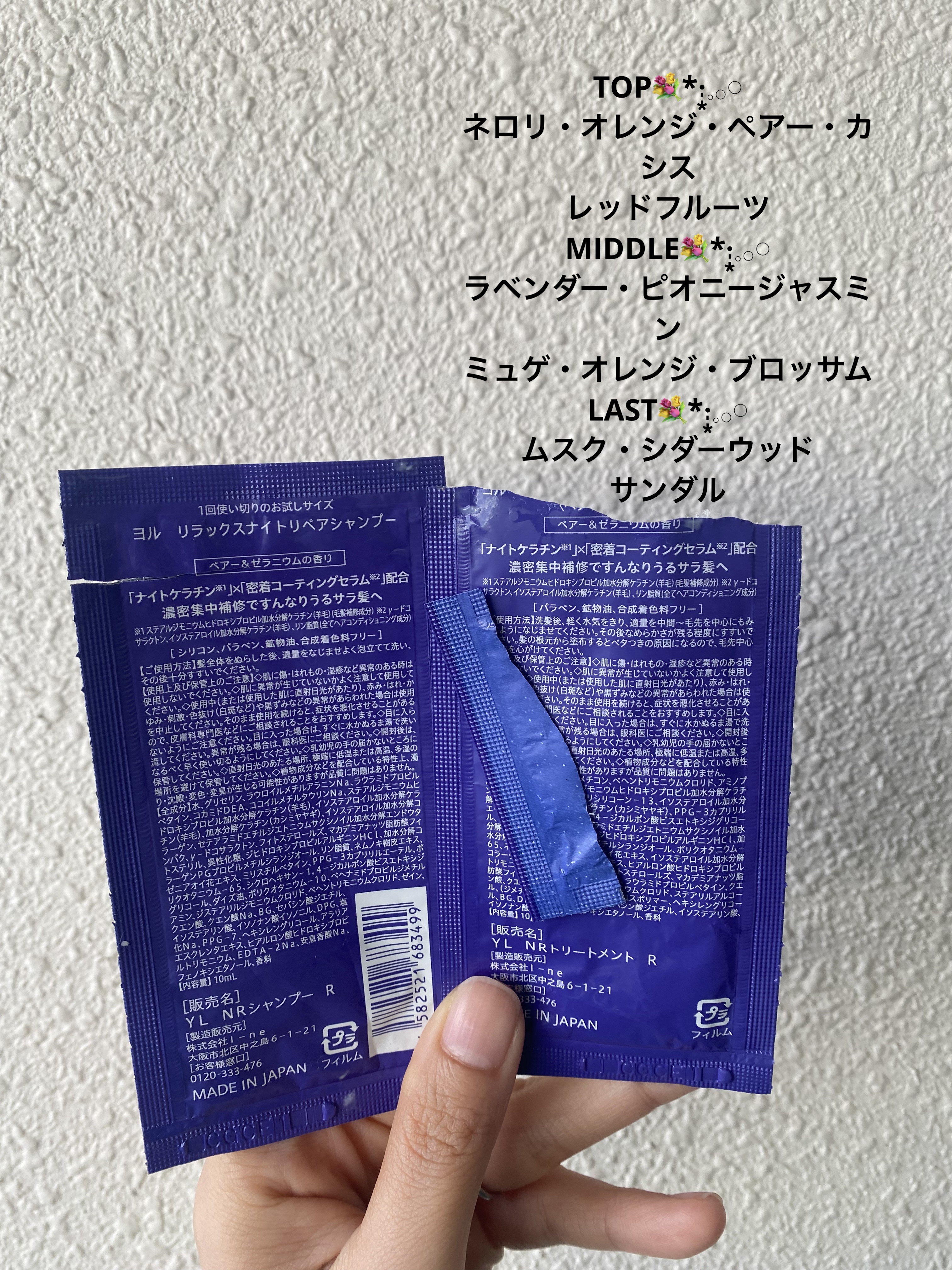 睡眠中も髪を守る。YOLUカームナイトリペアシャンプー/トリートメントレビューLIPSを通じてYOLU様からカームナイトリペアシャンプー/トリートメントを頂きました 「ナイトセラミド※1配合」でダメージを受けた髪に潤いを与え、「ネムノキエキス...