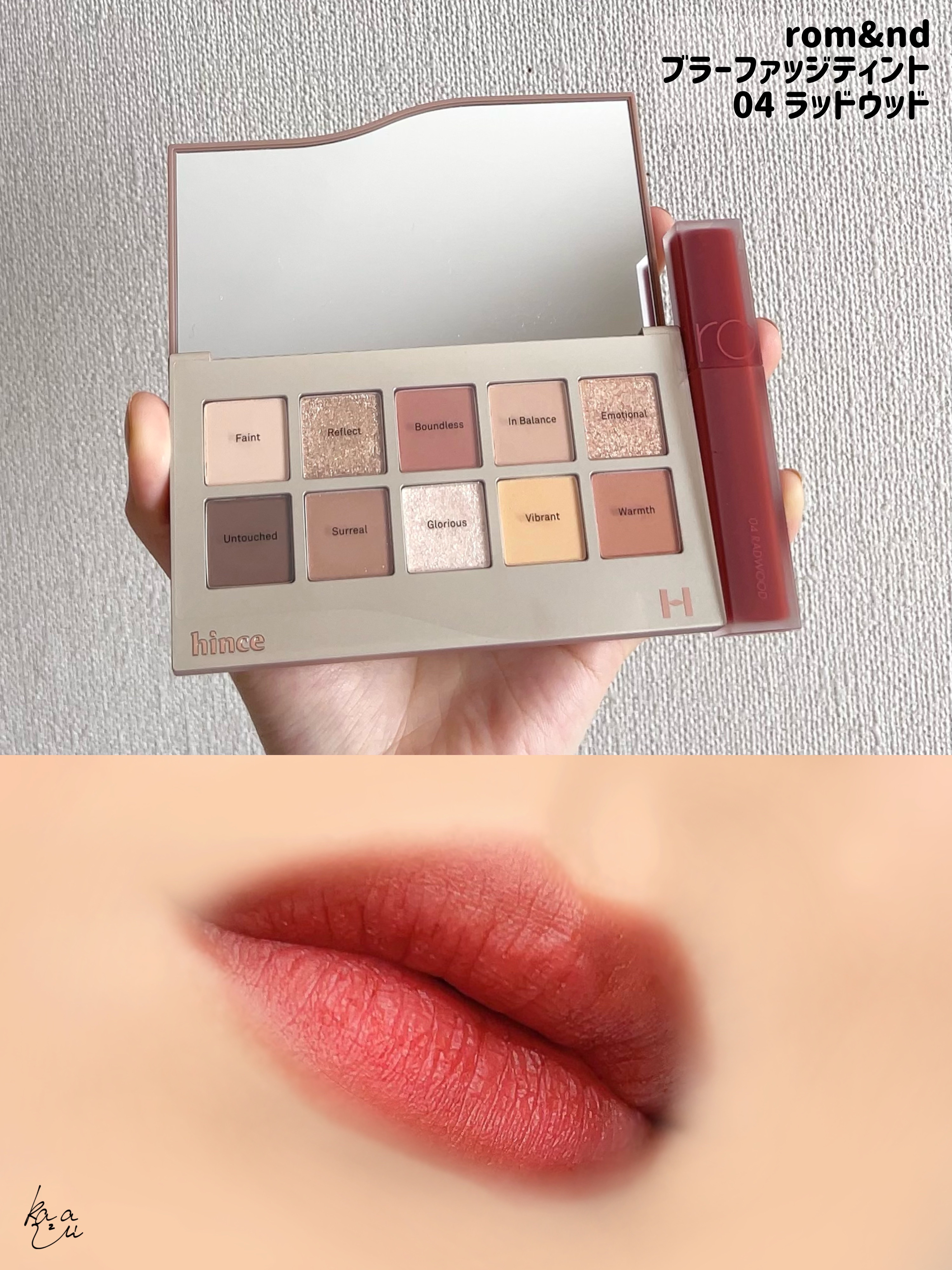 rom&ndのティントはフレッシュなオレンジは数が少なく定番だと01番だけ(だと思います) 深みのあるオレンジやオレンジブラウン系になると一気に色が増える!! 濃いめの発色は13,20あたりで08のアップルブラウンは濃すぎず比較的使いやすい色味だと思います👌 使いやすいヌードよりの色味が一気に増えたrom&nd もともとFIGFIGやJUJUBEが使いやすい!と人気でしたが、新色が増えてよりヌードなカラーが増えました👏 1番ベージュ系に近いのは新作の22,23あたり FIGFIGとJUJUBEをよりイマドキの色に仕上げたのが18,19あたりになります 個人的に好きなのは10,11あたりです 使いやすいし血色感もほどよくでる🌟 パッケージがその色になってるので結構どんな色か分かりやすいrom&nd 比較するとこれよりは赤いのかとか薄いのかなど分かるので参考にしてみて下さい🙌