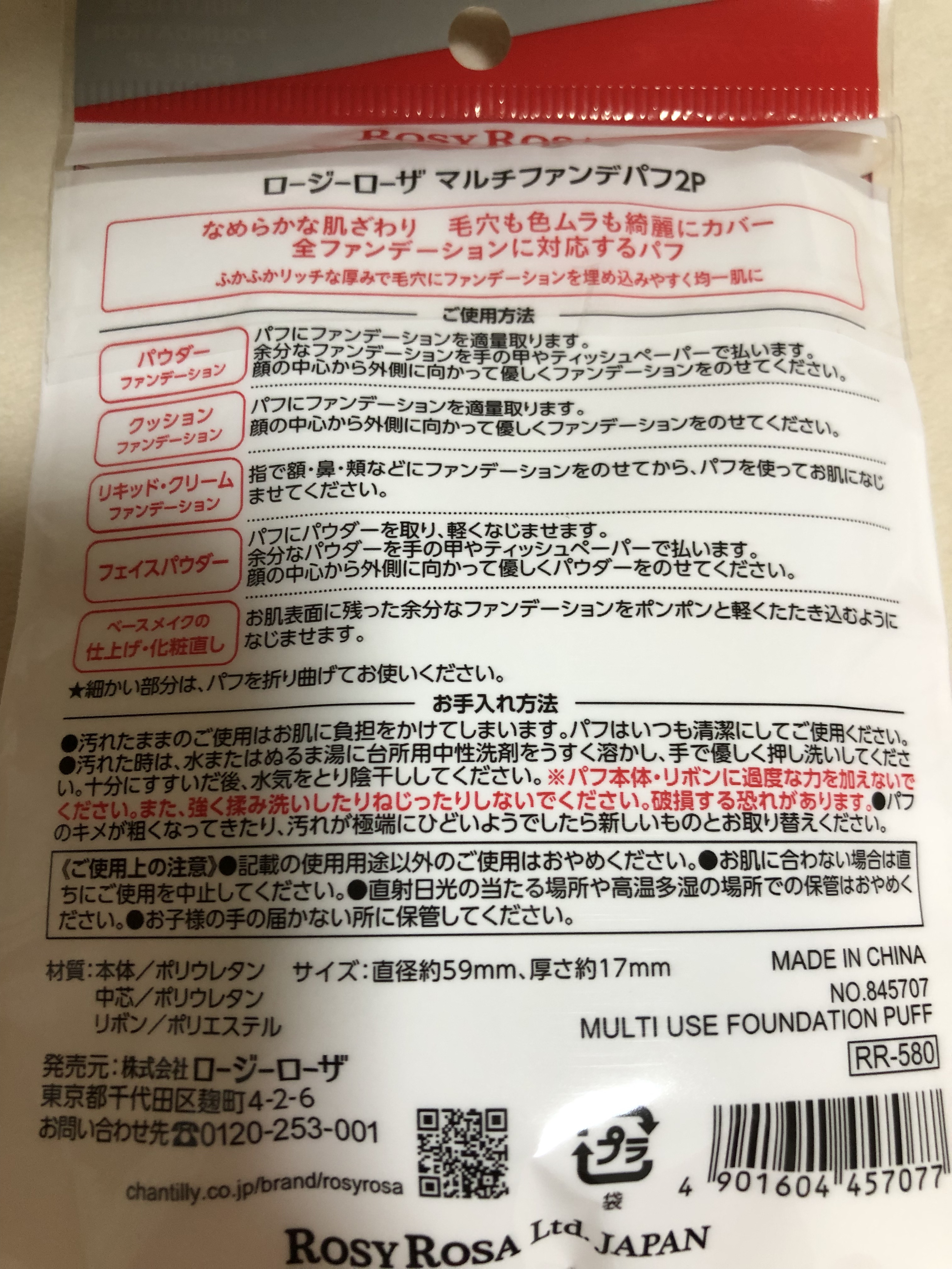商品詳細情報ロージーローザ マルチファンデパフ 2P