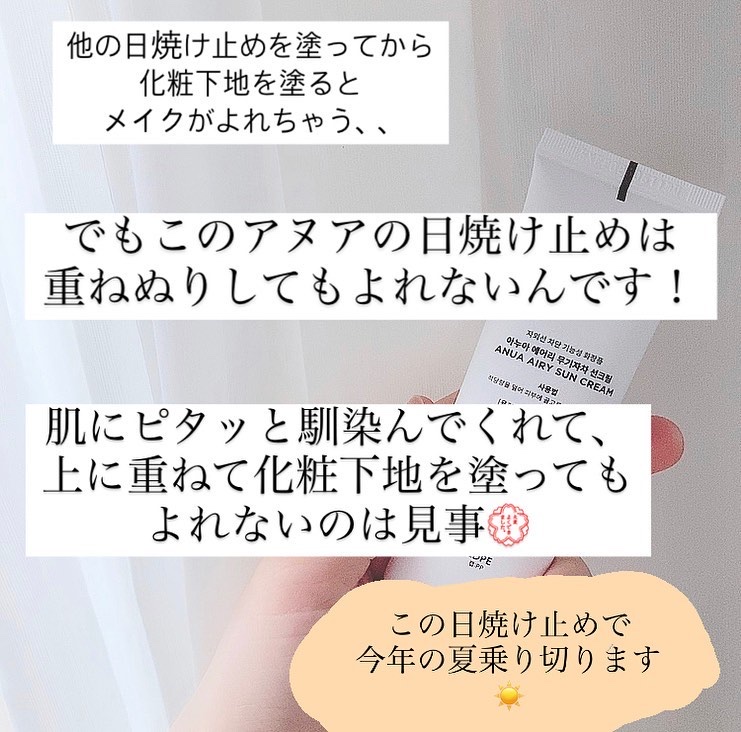 商品詳細情報Anua エアリーサンクリーム SPF50+PA++++