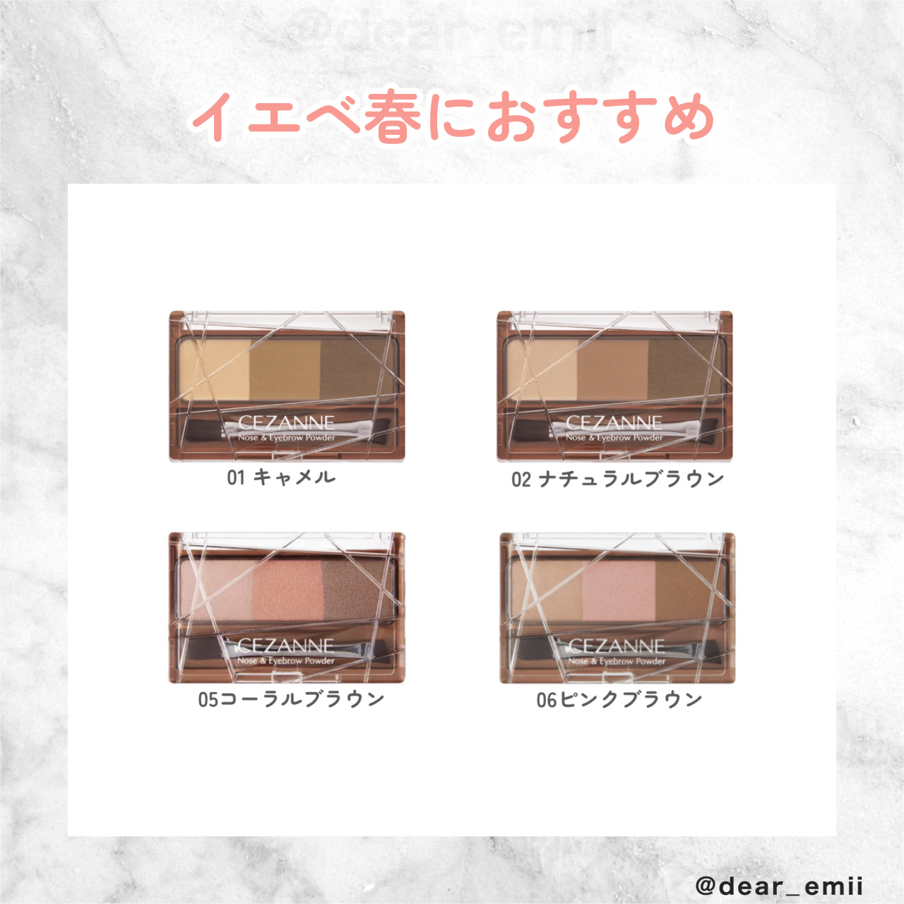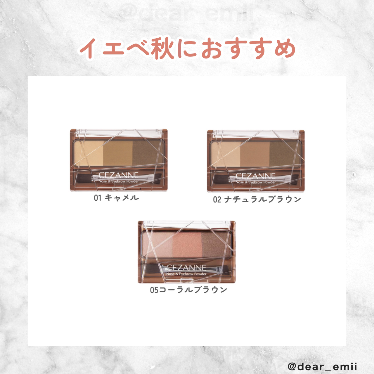 プチプラアイブロパウダーをパーソナルカラー別おすすめカラーをまとめたよ✨ アイブロパウダーって色んな色あって難しいけど、パーソナルカラーに合わせて選ぶと馴染みやすいよ〜❣️ 髪色やアイメイクの色味に合わせたりしても顔の統一感がでるからおすすめ✨️