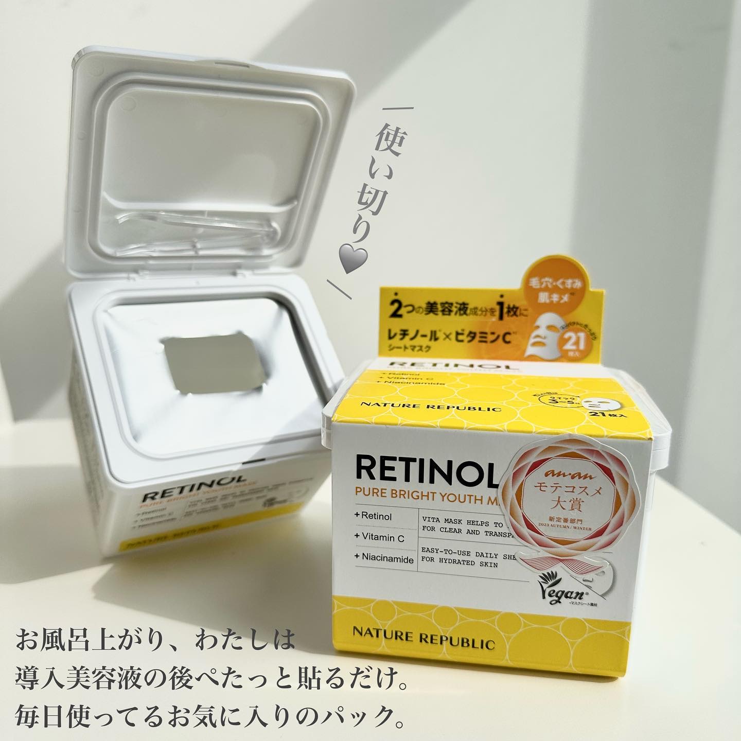 ☑︎レチノール(保湿成分)のスキンケアが気になる!☑︎美容成分が豊富なパックを使いたい☑︎ベタベタしないパックが好き…そんな方に使って欲しいアイテム◎レチノール(保湿成分)をメイン成分にネイチャーリパブリックオリジナルのレシピで9種のビタミン...