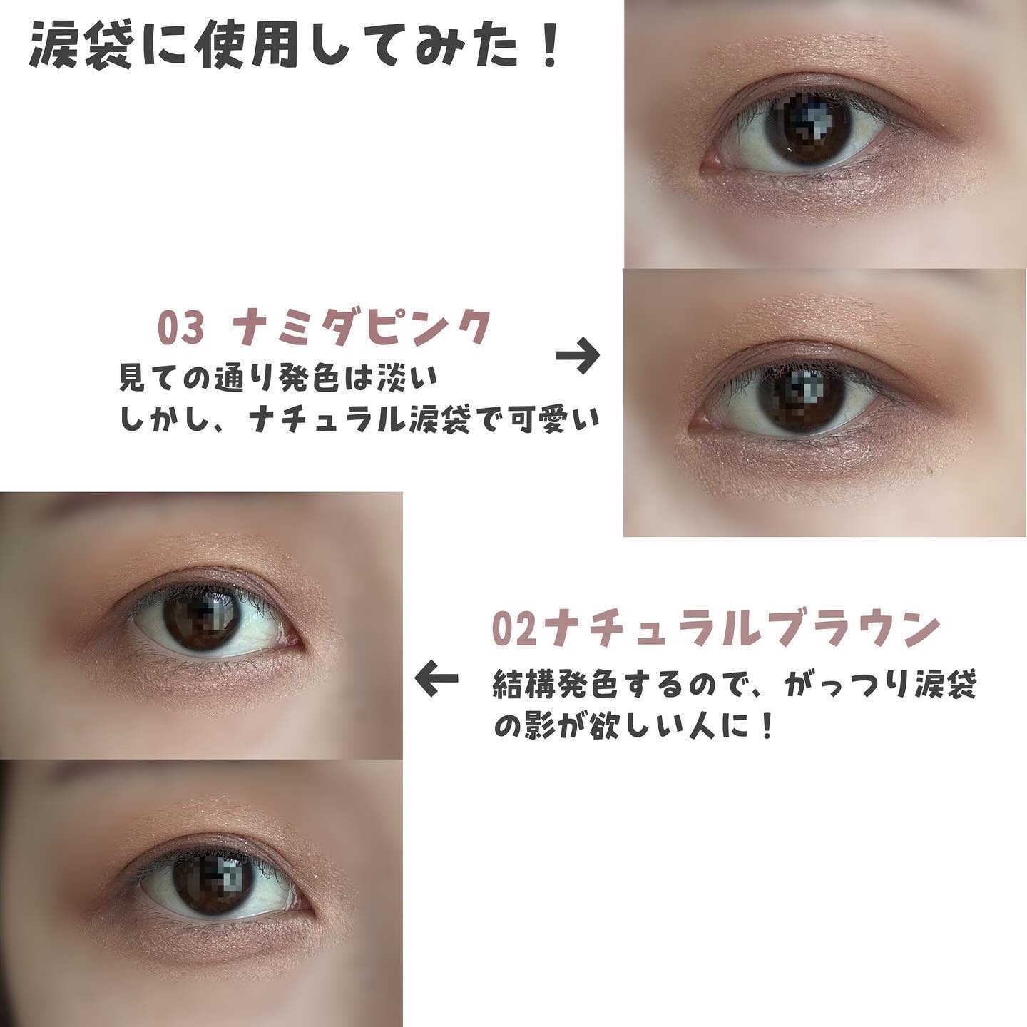 発色は薄めで、何度も描かないと色がつかない ほんとに自然にさりげなく盛りたい人向け。 発色がシアー(水っぽい)であんまりつかないんですよ 結構力入れないと色つかない笑