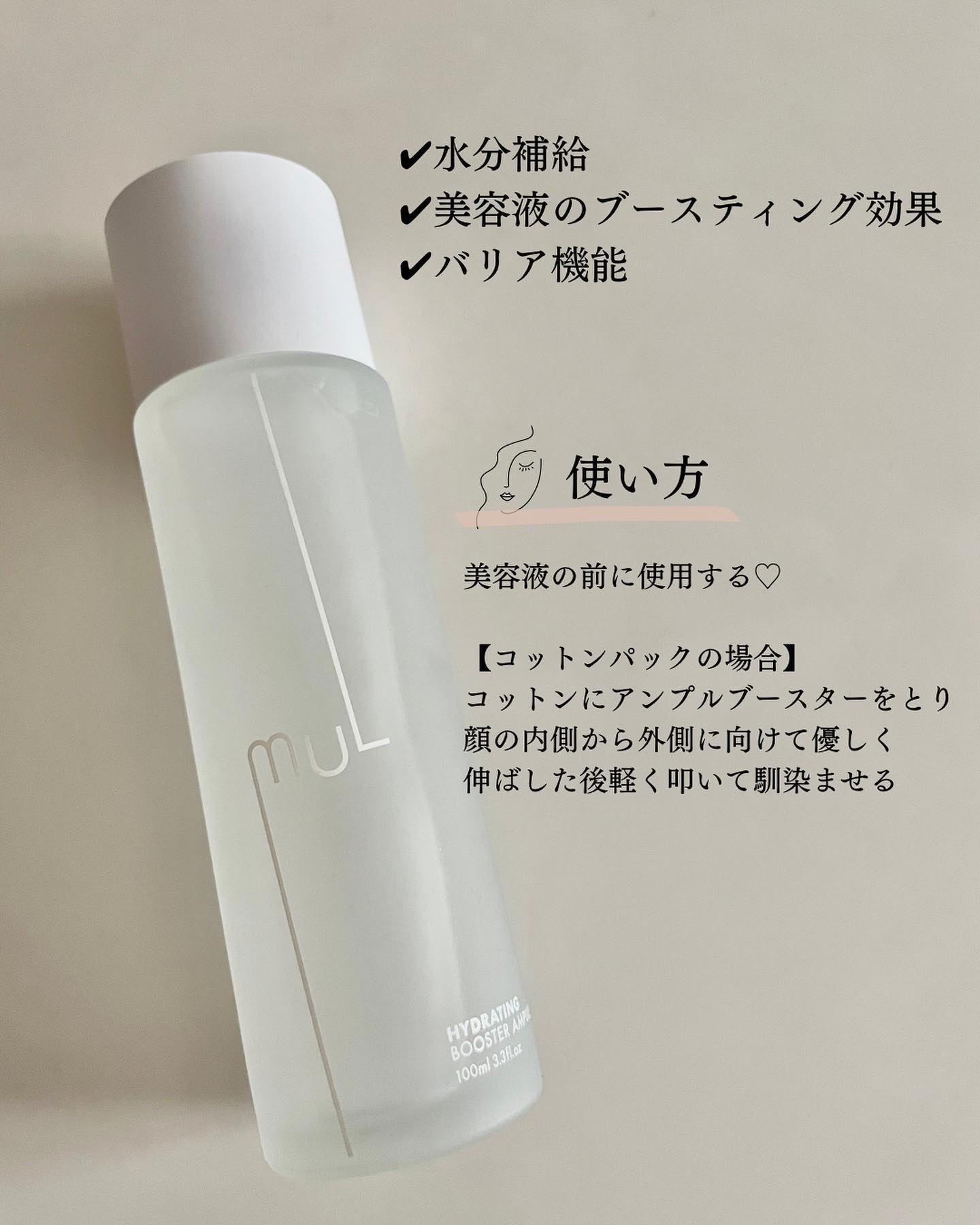 人気すぎて、完売が続いていたmul clearのブースターアンプルが10月13日ついに再販売✨✨ 水分補給 5種類のヒアルロン酸、ポリグルタミン酸配合でお肌に水分を届けて、保湿因子をつくり、乾燥から守ってくれます。 バリア機能 17種類のアミノ酸コンプレックス配合で バリア機能を健康に保ち、お肌の水分をしっかり保持してくれます。 美容液のブースティング効果 天然アミノ酸系保湿剤配合で、皮膚を柔らかくし、次に使う美容液のブースティング効果を発揮してくれます。 とろみのあるテクスチャーです。 肌馴染みがよく、しっとりもちもちな仕上がりに✨ 高保湿化粧水としても使えるので、忙しい 朝など時短になるのでいいですね🩷 コットンパックとしての使用もおすすめです✨