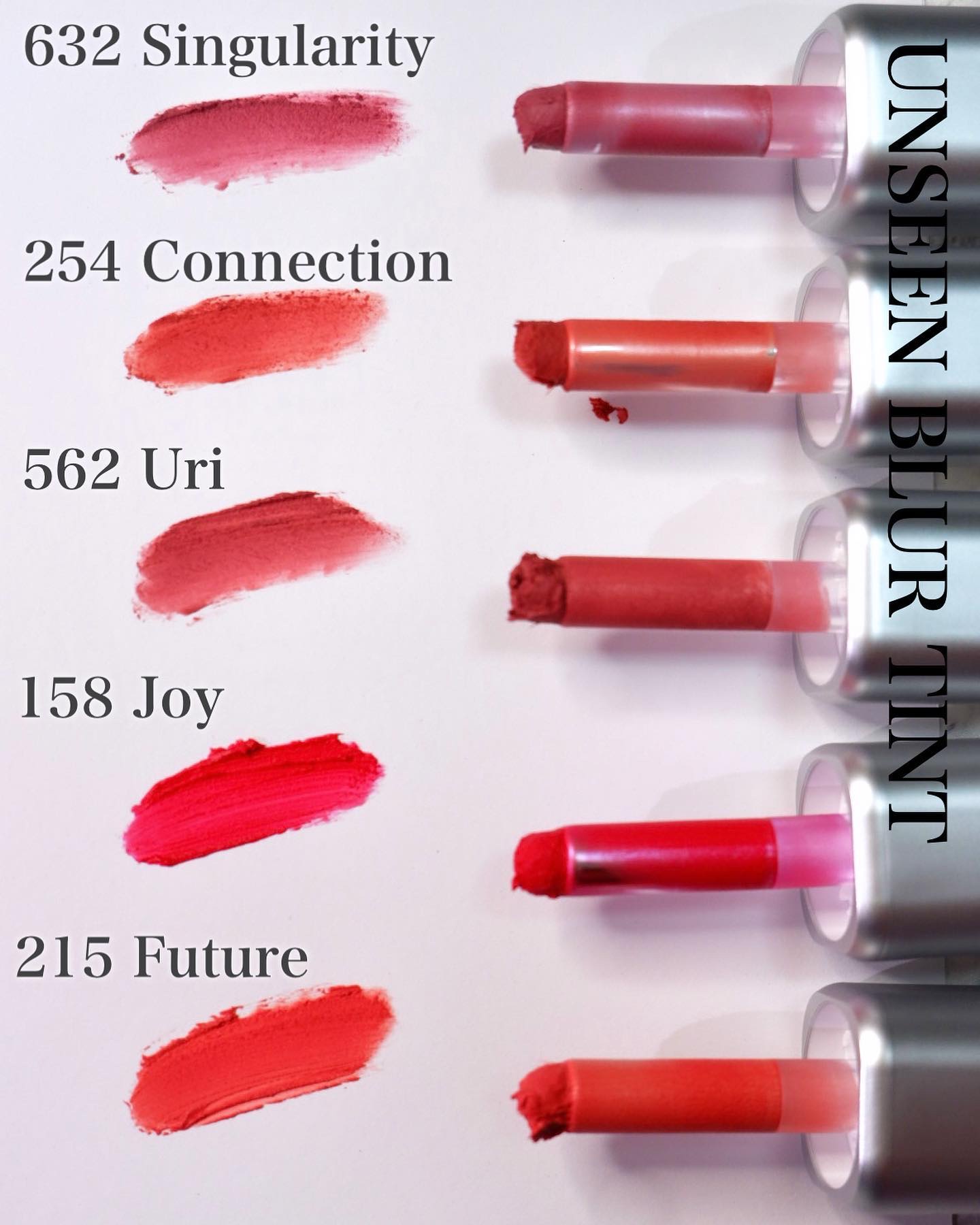 平たいブラシ型のアプリケーターで、撫でるように塗れて、先が細くなっているから端の方の細かいところまで形に沿って塗りやすい💋 ふわっと丸い弾丸ブラシのアプリケーターでぼかすように塗ることが出来て、マット初心者でもこなれ感がでて使いやすいよ💋泥リップ系の塗る心地に近い気もした! えりかが好きな色は、 MIRRORだと232 BLURだと215 が好き!ナチュラルにふっくら見える、ヌーディーカラー◎