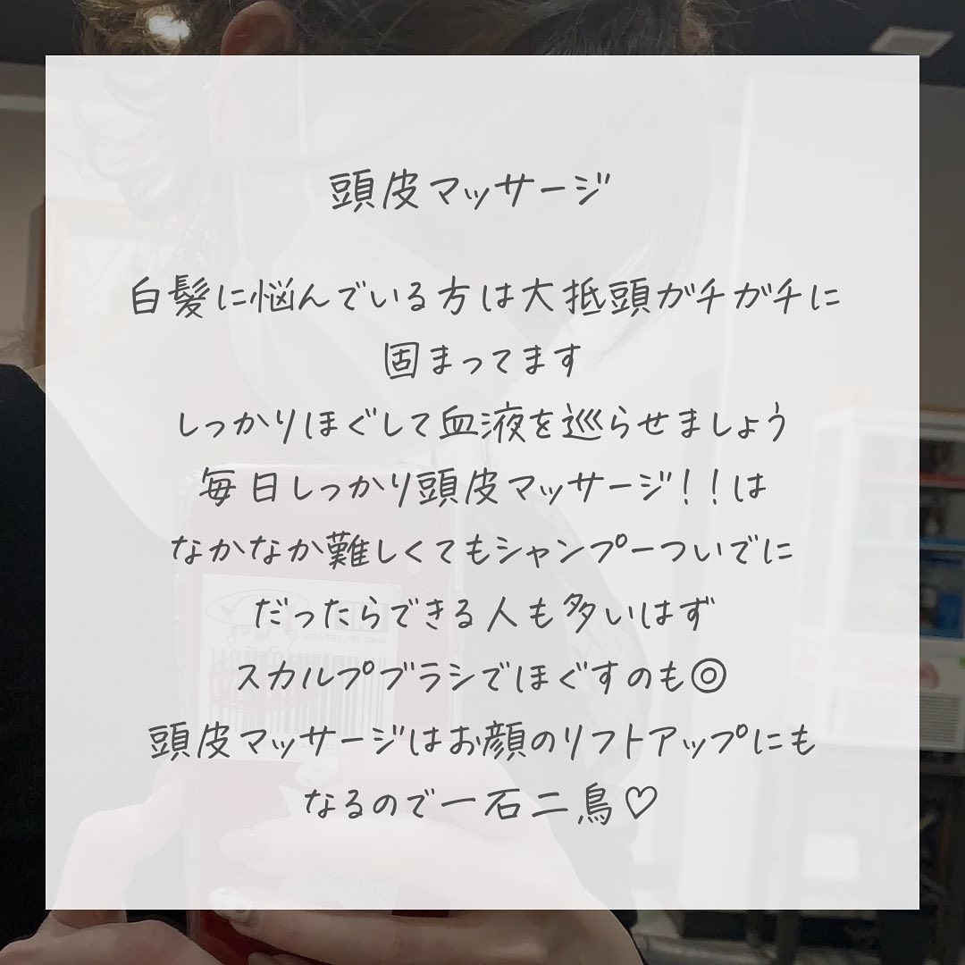 勉強になります‼️ 白髪は少ない方ですがやはり気になってました💦 ビタミン類やトマトジュースはよく飲んでいて、頭皮マッサージは毎日しています✨ 続けます😆