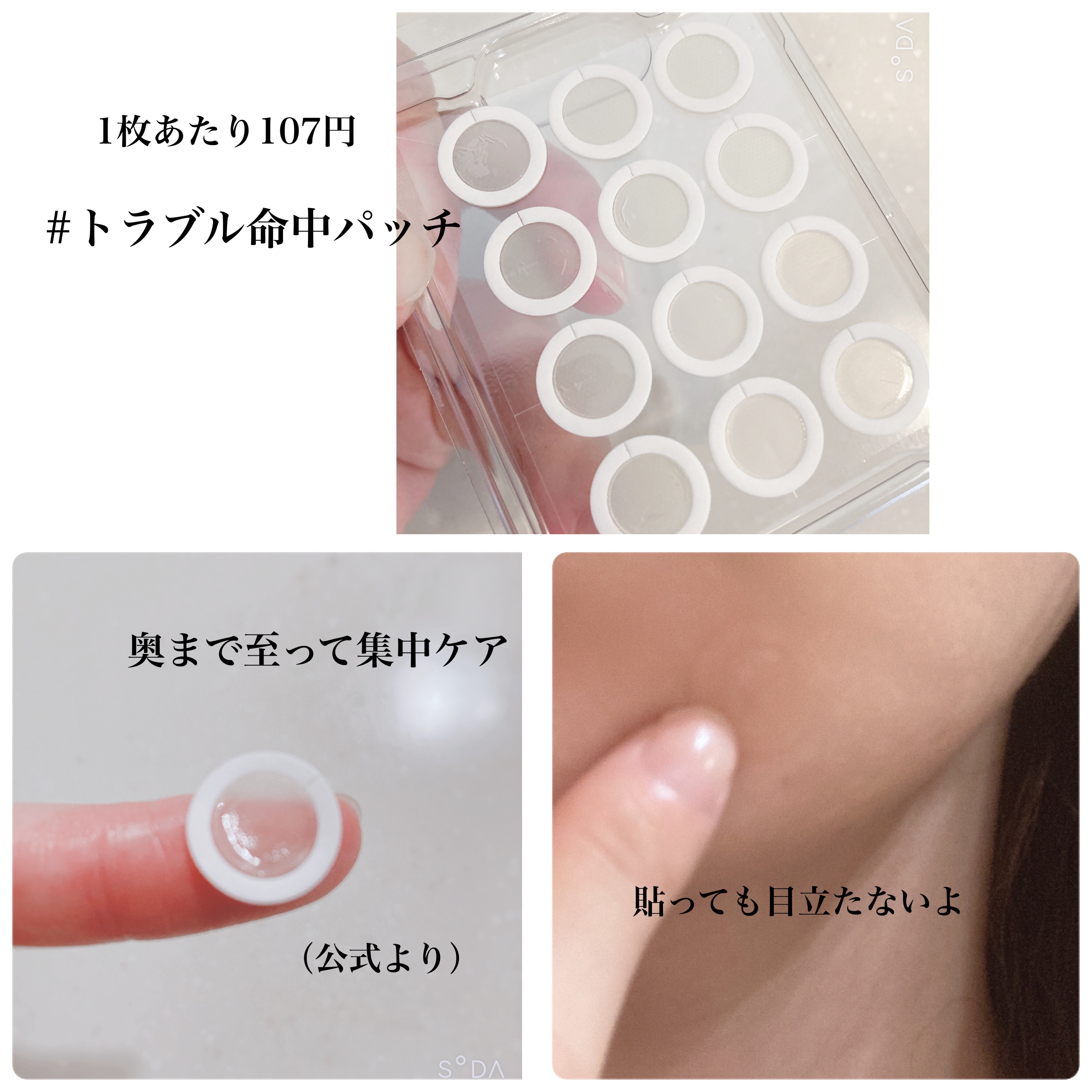 肌の奥まで安全かつ確実にトラブルケアしてくれる🚑 悩みの部分に密着させた後 指で30秒以上押すんだけど その時に少しチクッとしたくらいで それ以外は痛みを感じずに使えました💡 1枚あたり107円の高コスパ!
