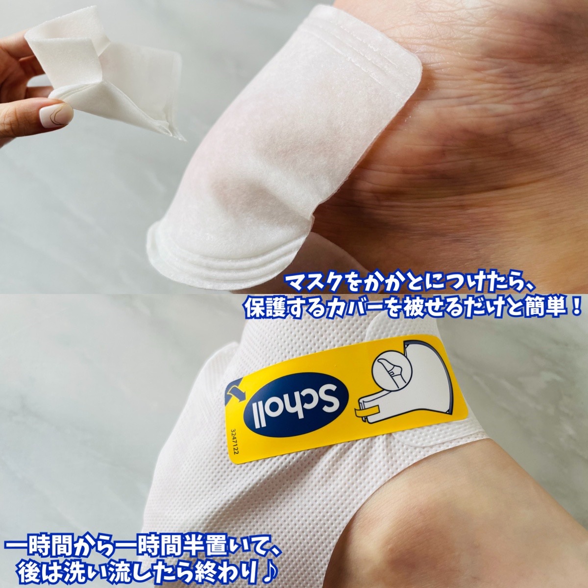 - フットケア専門ブランドが出す、かかと特化型のピーリングマスク。かかと用で高密着。装着はツーステップで簡単。液に浸ったマスクをかかとに合わせ保護カバーで包み、60-90分置いて洗い流し、かかとの古い角質をピーリング除去。1-2週間ですべすべかかと(個人差があります)。保湿成分配合で、洗い流した後も潤いが続く。かかとのターンオーバーのサポートケアをしたい方の本質的なかかとケア。ペディキュアしたままでもOK*。 *かかとを覆うマスクの形状によるもの