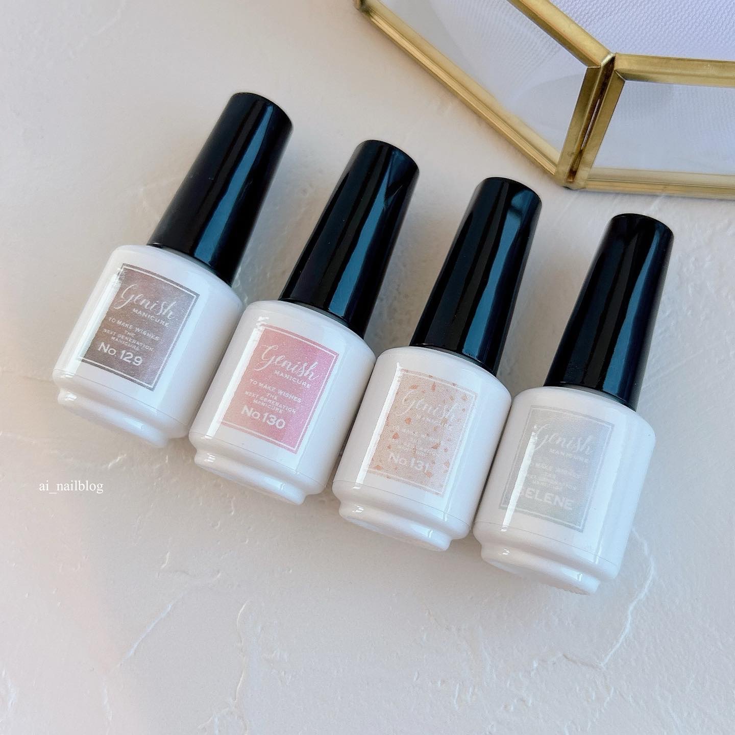 ジーニッシュの2024冬限定色が可愛すぎる❄️💕 今回の新色はダイヤモンドダストをイメージした4色🩵 140と142はアレンジにも使いやすい透け感発色✨ 公式オンラインショップ限定で買えるホリデーセットは、箱までめっちゃ可愛くてプレゼントにもおすすめ🎁💓 ジーニッシュは乾くのがほんと早いから、乾くの待てない〜って方にめちゃくちゃおすすめ😘