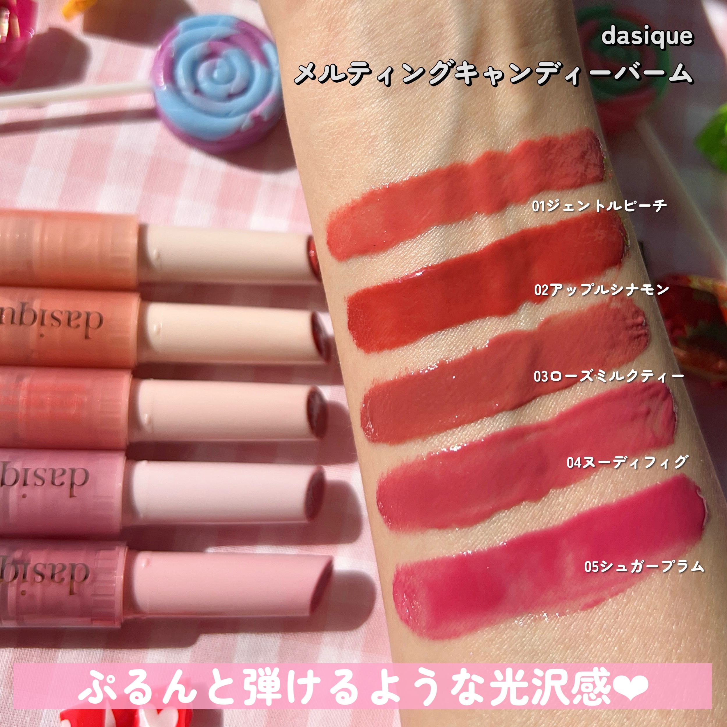 - <01 ジェントルピーチ> 水添ポリイソブテン、テトラ(ヒドロキシステアリン酸/イソステアリン酸)ジペンタエリスリチル、ヒドロキシステアリン酸エチルヘキシル、トリメリト酸トリトリデシル、水添ロジン酸メチル、ダイマージリノール酸(フィトステリル/イソステアリル/セチル/ステアリル/ベヘニル)、ジ安息香酸PG、合成ワックス、リンゴ酸ジイソステアリル、パラフィン、マカデミアナッツ脂肪酸フィトステリル、シリル化シリカ、イソステアリン酸ソルビタン、(VP/ヘキサデセン)コポリマー、酸化チタン、パルミチン酸デキストリン、マイクロクリスタリンワックス、トリイソステアリン酸ポリグリセリル-2、酸化鉄、赤202、黄5、ジイソステアリン酸ポリグリセリル-2、水、アルガニアスピノサ核油、ホホバ種子油、BG、サトウカエデエキス、フェノキシエタノール、アサイヤシ果実エキス、フラガリアチロエンシス果実エキス、クコ果実エキス、クロミグワ果実エキス、クロフサスグリ果実エキス、セイヨウヤブイチゴ果実エキス、キイチゴエキス、ローブッシュブルーベリー果実エキス、クランベリー果実エキス、ビルベリー果実エキス、エチルヘキシルグリセリン <02 アップルシナモン> 水添ポリイソブテン、テトラ(ヒドロキシステアリン酸/イソステアリン酸)ジペンタエリスリチル、ヒドロキシステアリン酸エチルヘキシル、トリメリト酸トリトリデシル、水添ロジン酸メチル、ダイマージリノール酸(フィトステリル/イソステアリル/セチル/ステアリル/ベヘニル)、ジ安息香酸PG、合成ワックス、パラフィン、リンゴ酸ジイソステアリル、マカデミアナッツ脂肪酸フィトステリル、シリル化シリカ、イソステアリン酸ソルビタン、(VP/ヘキサデセン)コポリマー、トリイソステアリン酸ポリグリセリル-2、パルミチン酸デキストリン、酸化鉄、マイクロクリスタリンワックス、酸化チタン、赤202、ジイソステアリン酸ポリグリセリル-2、黄5、水、アルガニアスピノサ核油、ホホバ種子油、BG、サトウカエデエキス、フェノキシエタノール、アサイヤシ果実エキス、フラガリアチロエンシス果実エキス、クコ果実エキス、クロミグワ果実エキス、クロフサスグリ果実エキス、セイヨウヤブイチゴ果実エキス、キイチゴエキス、ローブッシュブルーベリー果実エキス、クランベリー果実エキス、ビルベリー果実エキス、エチルヘキシルグリセリン <03 ローズミルクティー> 水添ポリイソブテン、テトラ(ヒドロキシステアリン酸/イソステアリン酸)ジペンタエリスリチル、ヒドロキシステアリン酸エチルヘキシル、トリメリト酸トリトリデシル、水添ロジン酸メチル、ダイマージリノール酸(フィトステリル/イソステアリル/セチル/ステアリル/ベヘニル)、ジ安息香酸PG、合成ワックス、リンゴ酸ジイソステアリル、パラフィン、マカデミアナッツ脂肪酸フィトステリル、シリル化シリカ、イソステアリン酸ソルビタン、(VP/ヘキサデセン)コポリマー、酸化チタン、トリイソステアリン酸ポリグリセリル-2、パルミチン酸デキストリン、マイクロクリスタリンワックス、酸化鉄、黄4、赤202、ジイソステアリン酸ポリグリセリル-2、青1、水、アルガニアスピノサ核油、ホホバ種子油、BG、サトウカエデエキス、フェノキシエタノール、アサイヤシ果実エキス、フラガリアチロエンシス果実エキス、クコ果実エキス、クロミグワ果実エキス、クロフサスグリ果実エキス、セイヨウヤブイチゴ果実エキス、キイチゴエキス、ローブッシュブルーベリー果実エキス、クランベリー果実エキス、ビルベリー果実エキス、エチルヘキシルグリセリン <04 ヌーディーフィグ> 水添ポリイソブテン、テトラ(ヒドロキシステアリン酸/イソステアリン酸)ジペンタエリスリチル、ヒドロキシステアリン酸エチルヘキシル、トリメリト酸トリトリデシル、水添ロジン酸メチル、ダイマージリノール酸(フィトステリル/イソステアリル/セチル/ステアリル/ベヘニル)、ジ安息香酸PG、合成ワックス、リンゴ酸ジイソステアリル、パラフィン、マカデミアナッツ脂肪酸フィトステリル、シリル化シリカ、イソステアリン酸ソルビタン、(VP/ヘキサデセン)コポリマー、酸化チタン、パルミチン酸デキストリン、マイクロクリスタリンワックス、トリイソステアリン酸ポリグリセリル-2、酸化鉄、黄4、赤202、ジイソステアリン酸ポリグリセリル-2、水、アルガニアスピノサ核油、ホホバ種子油、BG、サトウカエデエキス、フェノキシエタノール、アサイヤシ果実エキス、フラガリアチロエンシス果実エキス、クコ果実エキス、クロミグワ果実エキス、クロフサスグリ果実エキス、セイヨウヤブイチゴ果実エキス、キイチゴエキス、ローブッシュブルーベリー果実エキス、クランベリー果実エキス、ビルベリー果実エキス、エチルヘキシルグリセリン <05 シュガープラム> 水添ポリイソブテン、テトラ(ヒドロキシステアリン酸/イソステアリン酸)ジペンタエリスリチル、ヒドロキシステアリン酸