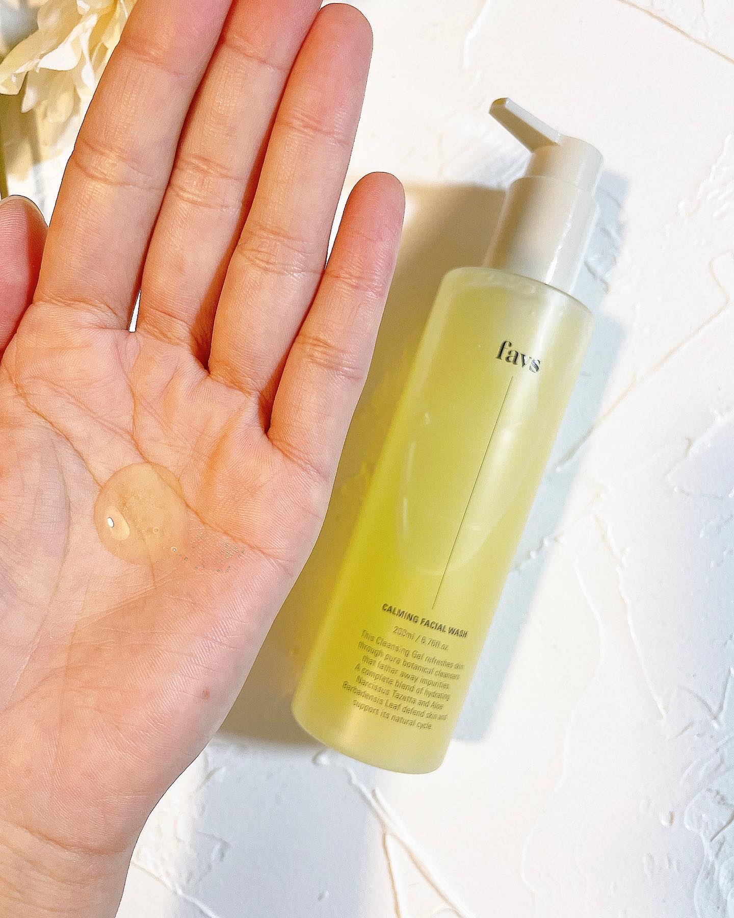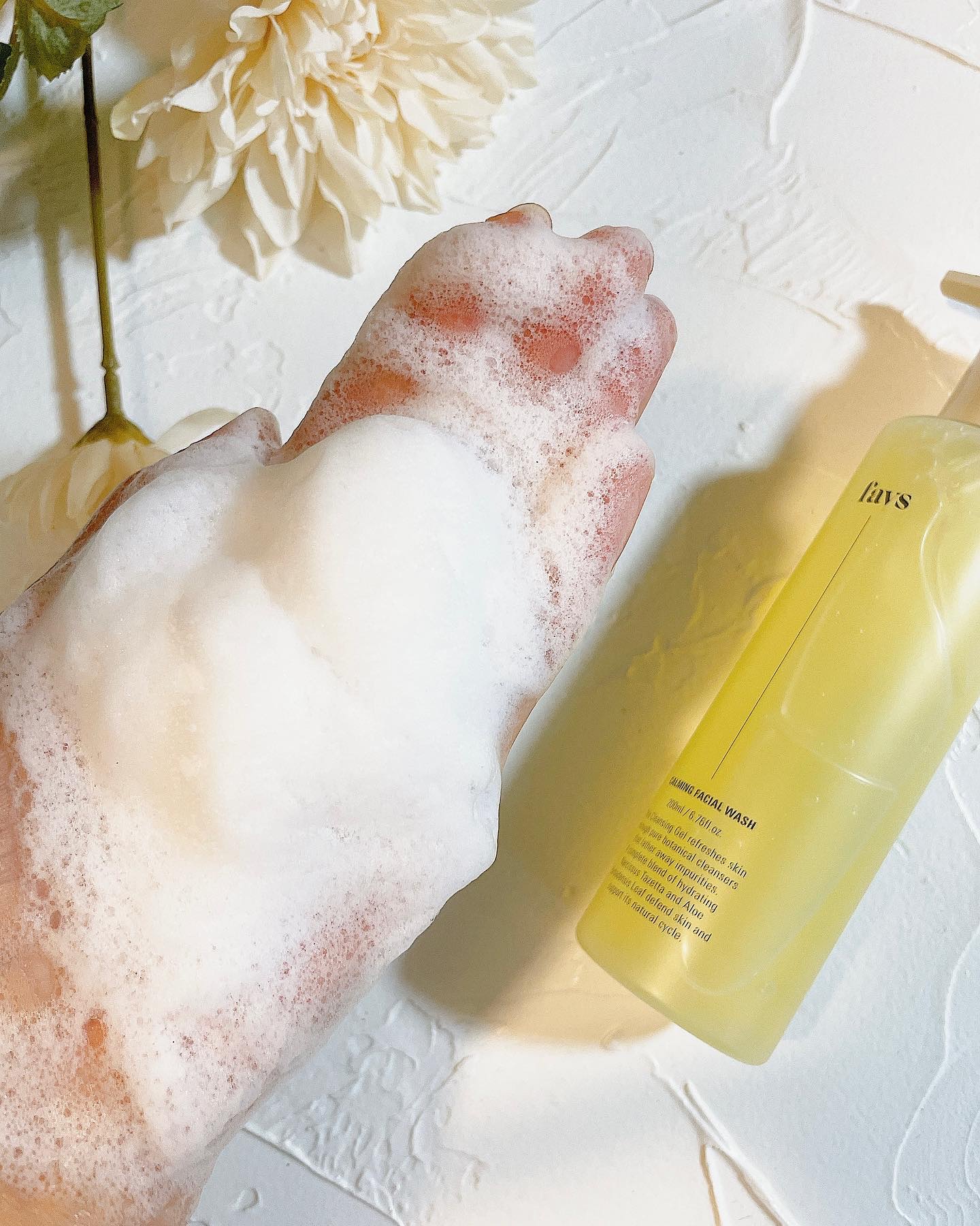 高い洗浄力でさっぱりした使い心地なのに、洗い上がりは肌の乾燥が気にならないしっとり感がありました🫧 favsのカーミングフェイシャルウォッシュは、使うたびにお肌の調子を整えてくれるという美容液のような洗顔料なんだとか♡洗いながらお肌のケアもできて嬉しすぎる・:*+. 敏感肌をケアしてくれるスイセン根のエキスや、乾燥などで肌荒れしやすい肌をすこやかに整えてくれる成分が配合されているそうなので、乾燥しがちなこれからの季節にも良さそうです◎