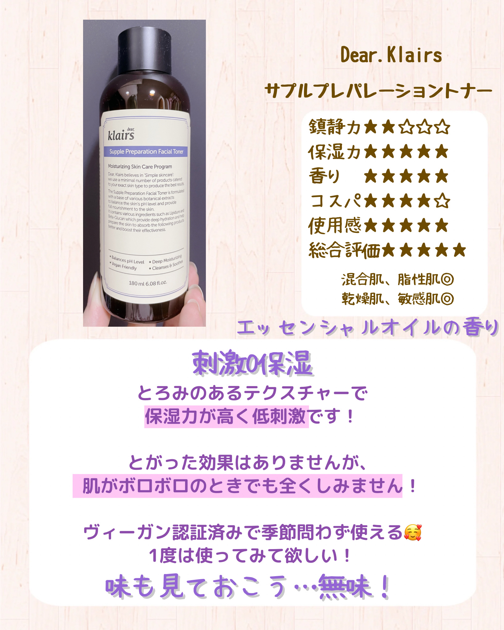 Klairs サプルプレパレーションフェイシャルトナー(180ml) | 2,300円 |