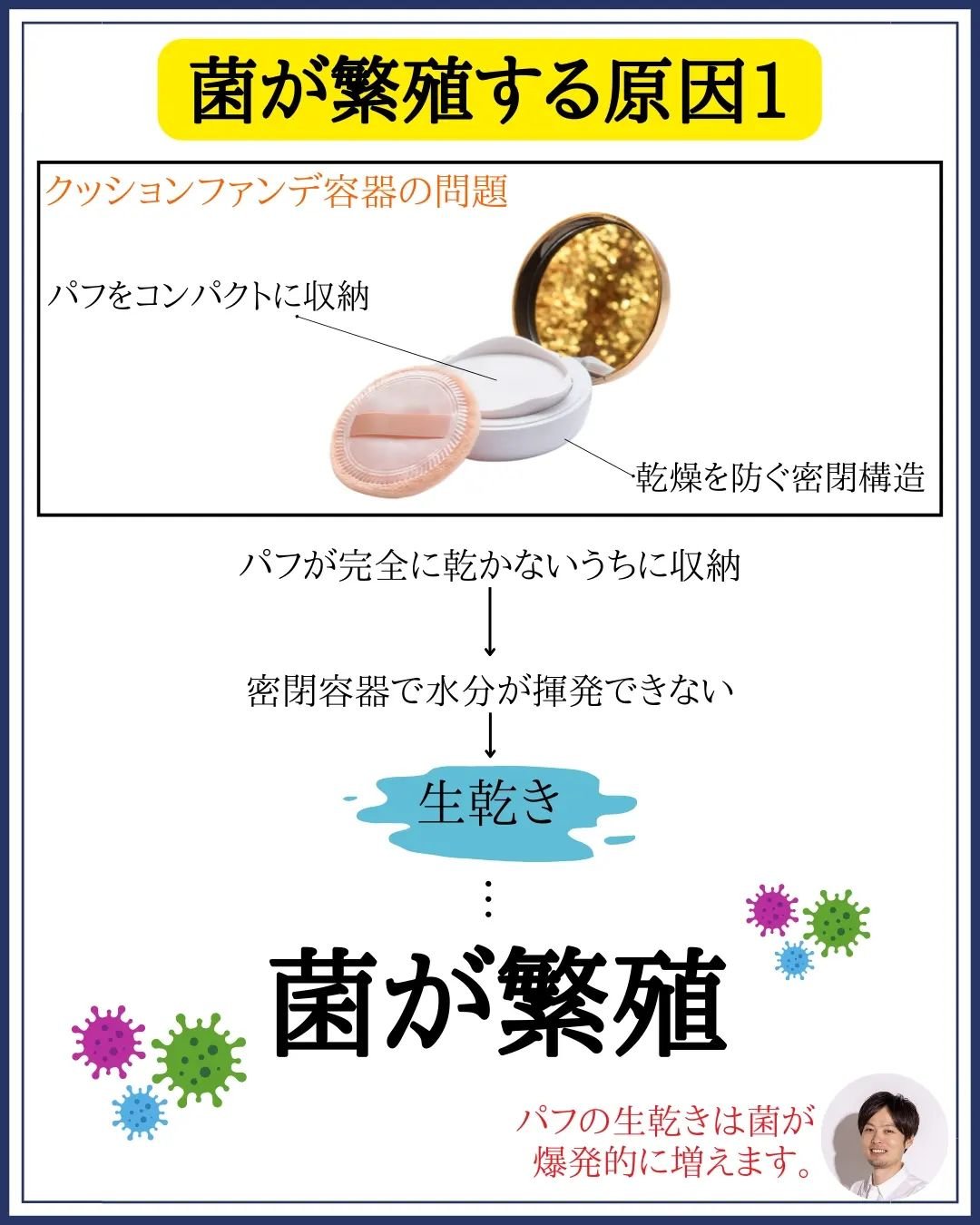 クッション側が菌汚染すると思いきや、実はパフの洗浄が最大のリスクなんです。 よく絞ってからキッチンペーパーに水分を吸わせてください。 残像水分を少なくすることが最も菌汚染のリスクが少ない方法です。 クッションファンデに限らずファンデーションのパフの洗浄は全部このやり方が正解です!