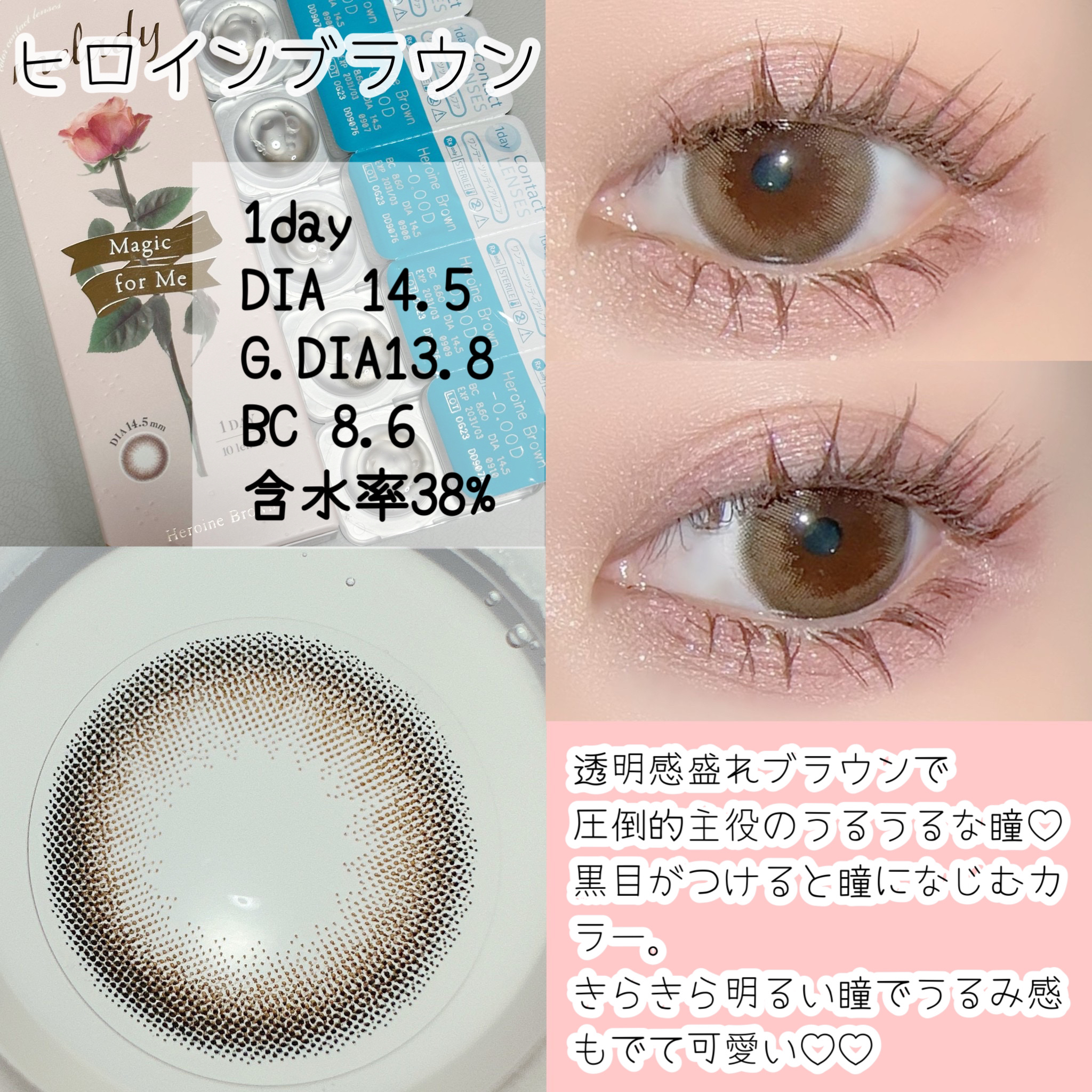 - ※2025年6月以降、商品パッケージ裏面・側面の一部表記を順次変更いたします。尚、これにかかる商品の交換・返品は承っておりません。 ヒロインの瞳の法則♡ ナチュラルなのにしっかり盛れるDIA14.5mm! ■ヒロインブラウン 透明感たっぷりなブラウンレンズ。瞳に馴染む色だからとってもナチュラル。 ■アイドルリング さりげない細フチとちゅるんブラウンがナチュラルに瞳を強調♡ ■ライアーピンク ピンクブラウンのフチとムラのあるデザインで立体感のあるきらきらな瞳を演出♡ ■レディブラック じゅわっとぼかした繊細なデザインで透明感に満ちた存在感のある瞳を演出♡ ■プリンセスショコラ しっかり太フチとあまくとろけるショコラブラウンでプリンセスみたいに愛される瞳に♡ ■スターグロー くりっと盛れる太フチとうるみツヤめく水光カラーで光を取りこむキラツヤな瞳に♡ ■Maria Ring(マリアリング) 絶妙細フチと白っぽ透明感グレージュでちょっぴり背伸びした余裕仕込みレンズ♡ ■Mermaid Ring(マーメイドリング) 絶妙太フチときらめき透明感マーメイドグレーでピュアにうるめく美少女な瞳に♡ カラーコンタクトレンズの不適正使用による眼障害の危険性等などがあります。 ●コンタクトレンズは高度管理医療機器です。不十分な洗浄・消毒など不適切なケアや、長時間・交換期間を超えた装用により、アレルギー性結膜炎、角膜感染症、角膜潰瘍等の重篤な眼障害が発生する危険性があります ●ご使用前に取扱説明書を確認してください 使用上の留意事項 ●眼科医院等を受診してからお求めください ●眼に異常を感じたら直ちにレンズ使用を中止し、お近くの眼科等で診察を受けてください ●医師の指示にしたがってご使用ください ●コンタクトレンズを装用する場合、自覚症状がなくても、眼科医院等での定期検査を受けてください ●レンズに不具合がある場合は使用しないでください