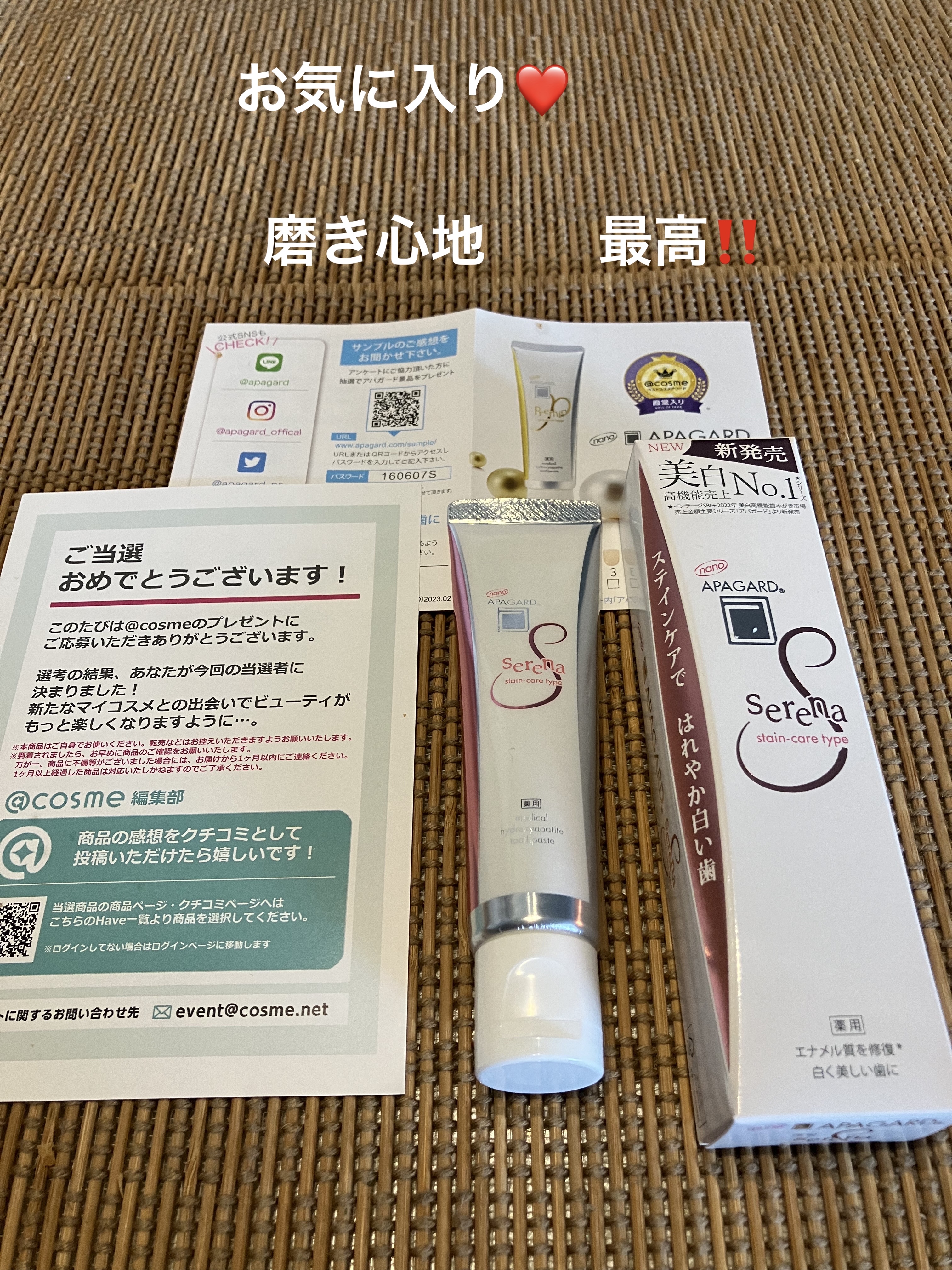 独自成分「薬用ハイドロキシアパタイト」がエナメル質を整えてむし歯を予防‼️アパガードはエナメル質の健康を保つことで自然な白い歯に導く美白歯みがきブランド💁アパガードセレナは、コーヒー・紅茶・ワインなどによる着色汚れを落とすステインケア成分をダ...
