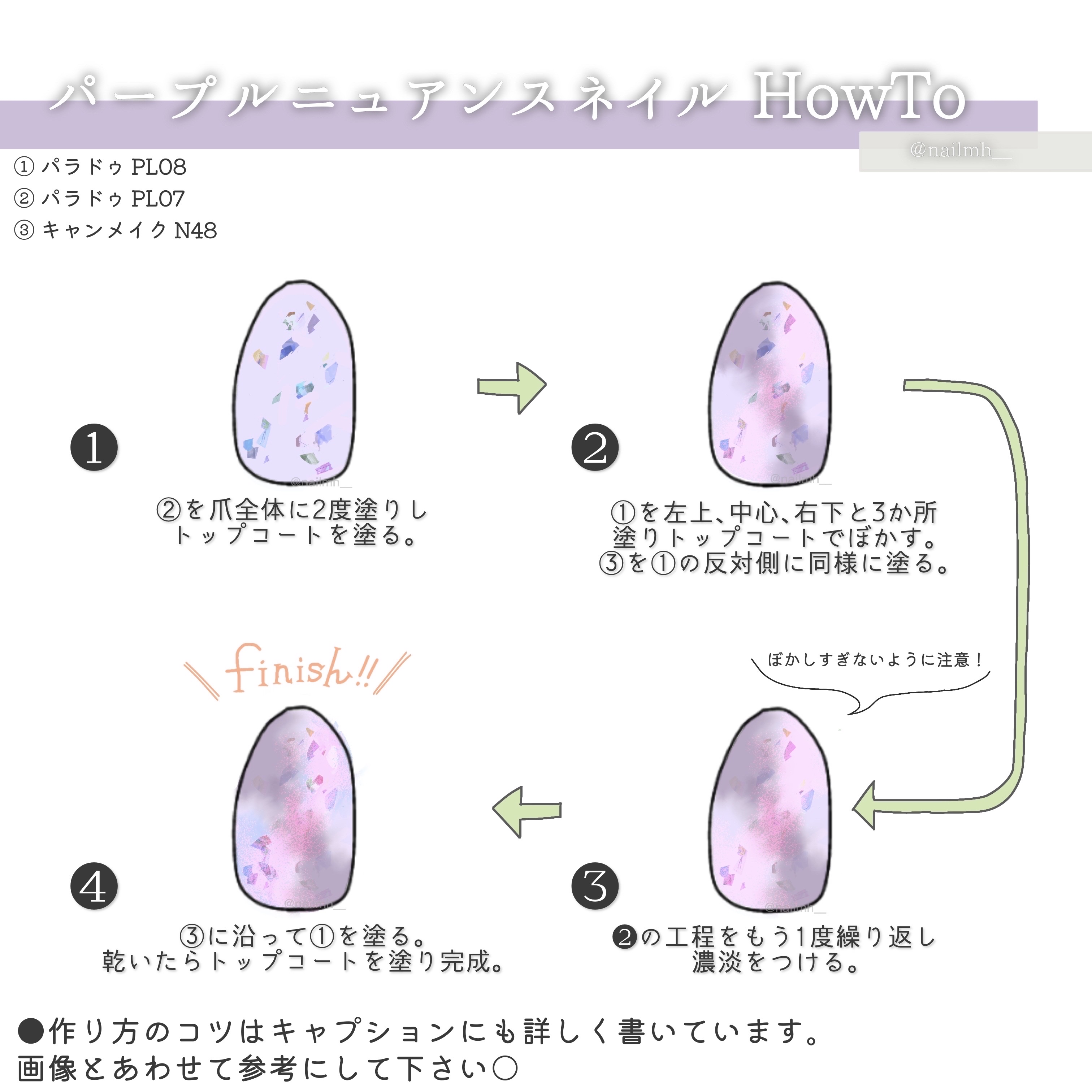 ぽわんと血色感とちゅるんとしたツヤが可愛らしいネイルの紹介です! 中心に乗せた色をぼかすときは、素早くかつハケを優しくとんとんと叩いてぼかすこと。 ぼかす時にハケ跡がついてしまうと綺麗なぽわんとした血色感にならないのでぼかす時はハケをこすったり左右に動かすというよりはとんとんと軽く叩いて広げていくようなイメージでぼかしてください