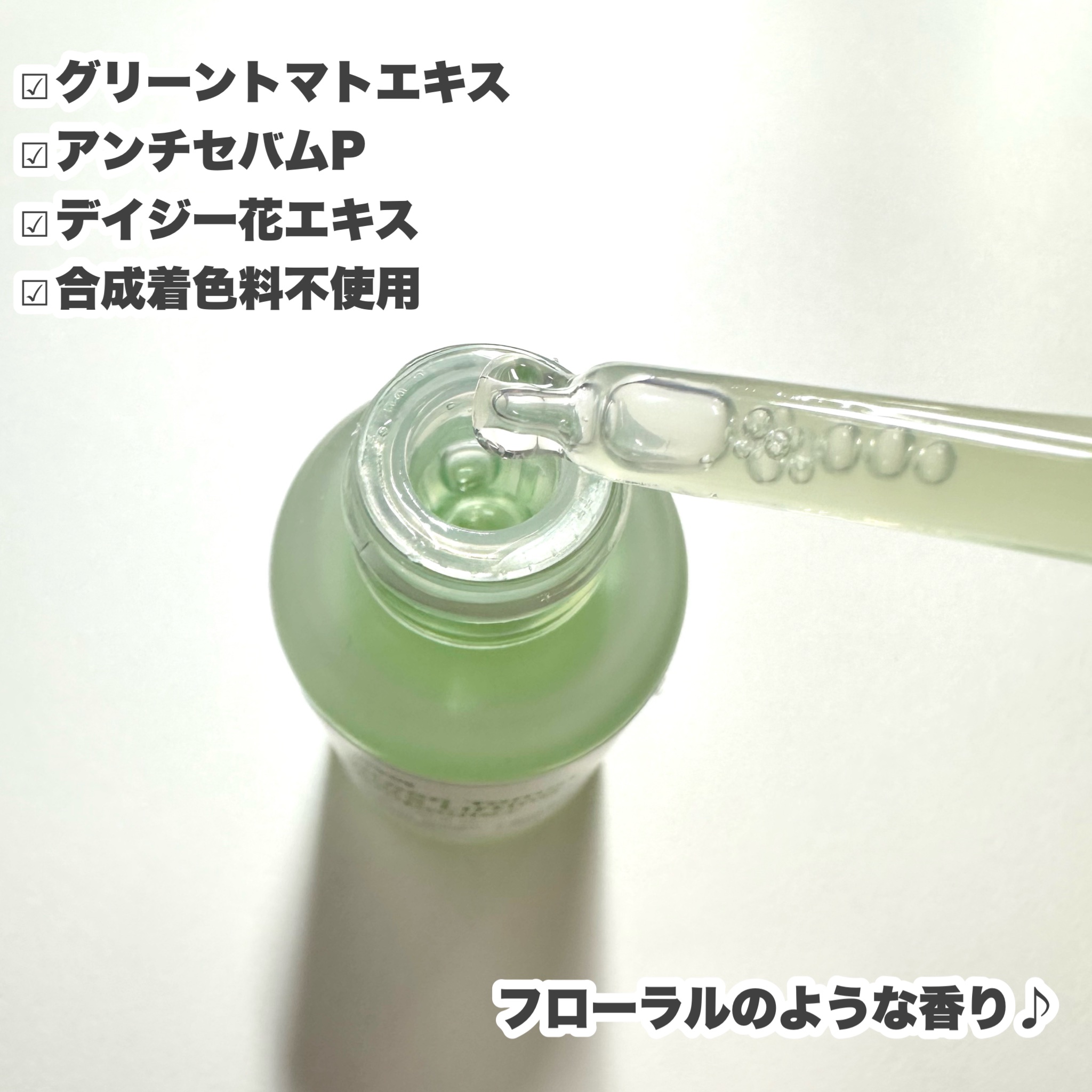 ぷるぷるの赤ちゃん肌を目指せると話題の大人気毛穴アンプル。加齢や弾力不足が原因の縦毛穴が垂れるとしわになる!? 透明がかった黄緑色でとろみのあるテクスチャ、伸びがよくスーッと肌になじんでくれました。爽やかな香りも心地いいです。 リキッドファンデーションに少量混ぜて使うと、より密着度が増して毛穴レス肌が目指せるのだとか!?
