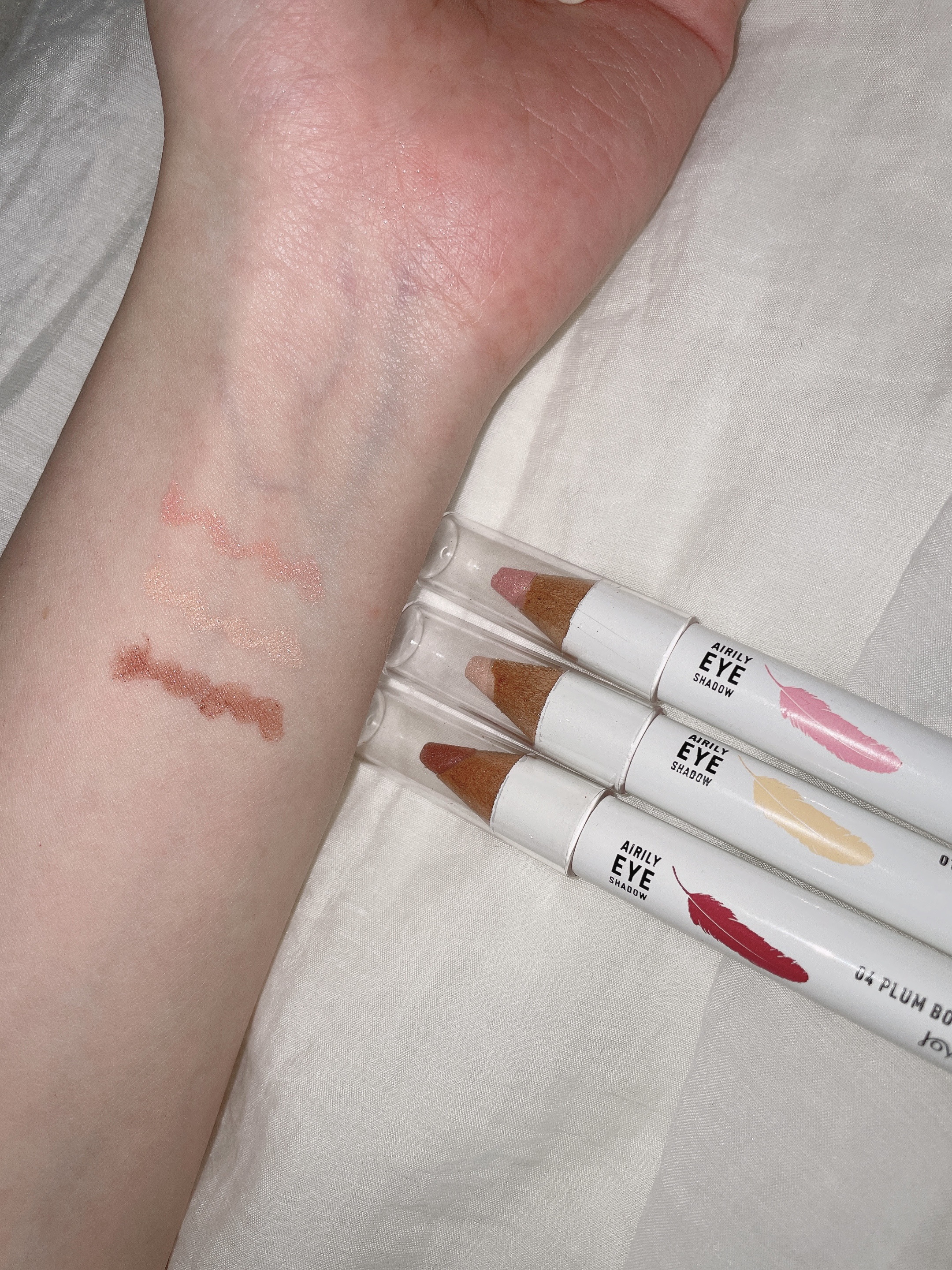 - スティックなのにパウダー。1本で思い通りのアイメイクが自由自在に描ける「ジョイココ エアリーアイシャドウ」。1本でアイメイクが完成できることを目指した新体験のアイシャドウ。指で優しく撫でるだけで好みのグラデーションを演出し、スティックだから気になる部分はピンポイントで狙えます。パウダーを優しく芯に閉じ込める特殊な技術で、ふんわり羽のように軽いエアリー感のある書き心地を実現。アイシャドウだけではなく、涙袋・ハイライト・チークにも使えます。
