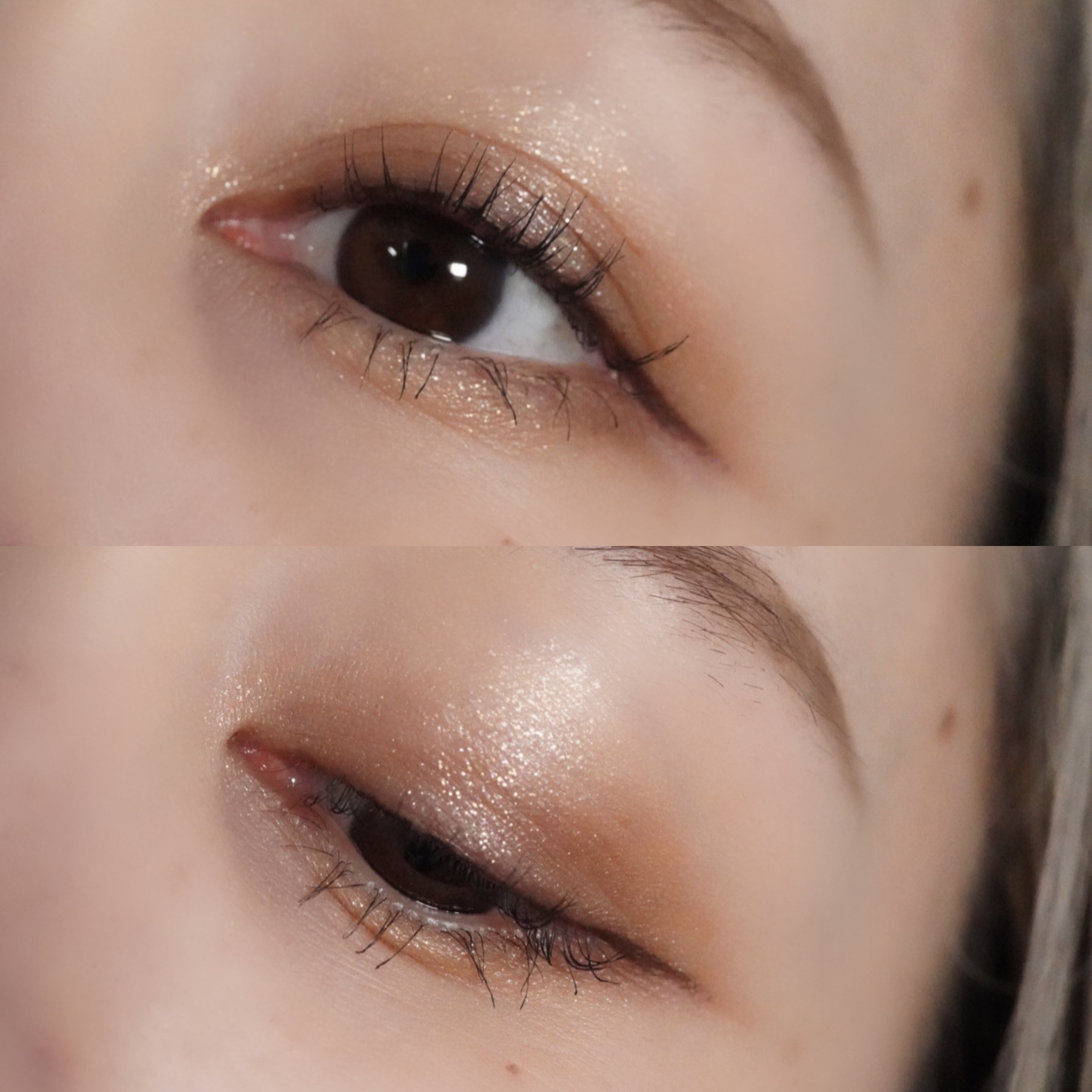 めちゃくちゃ薄づきなんだけどそれが良い…! 透け感あるソフトマットでほんわり血色いい目元に。 締め色も濃過ぎない絶妙な色味。 ラメはさりげなく光る濡れツヤ✨ このシリーズのショコラの香りもめちゃくちゃ良くてお気に入り。 使うたびに嗅いでしまう笑