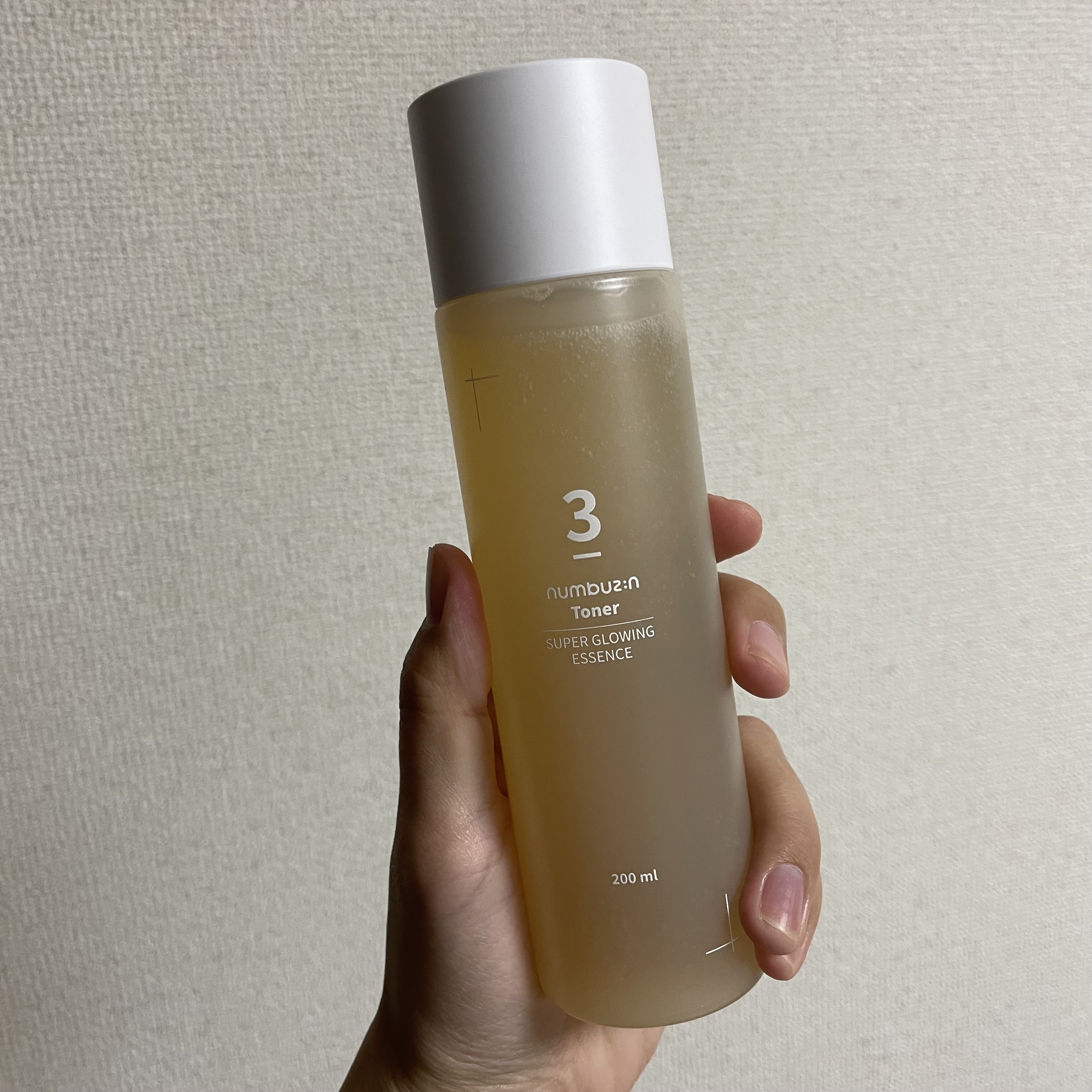 「ナンバーズイン 3番 うるツヤ発酵トナー」を使ってみました。表面と裏面が白色で、側面が鮮やかな黄色のパッケージでした。表面にトナーの絵が描かれているのが印象的でした。開けてみると、表面に描かれた形のトナーが出てきました。透明な黄色のボトルで...