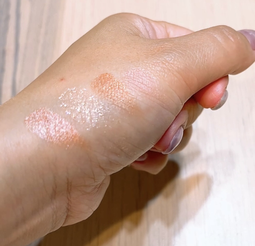 - 左上:タルク、合成フルオロフロゴパイト、イソステアリン酸ポリグリセリル-2、トリ(カプリル酸/カプリン酸)グリセリ ル、シリカ、ラウロイルリシン、ダイマージリノール酸(フィトステリル/イソステアリル/セチル/ステアリル/ベヘニ ル)、セスキイソステアリン酸ソルビタン、エチルヘキシルグリセリン、カプリル酸グリセリル、トコフェロール、クロルフェネ シン、デヒドロ酢酸Na、シャクヤク根エキス、リンゴ果実エキス、セージ葉エキス、ローマカミツレ花エキス、アボカドエキ ス、BG、水、マイカ、酸化チタン、酸化スズ、酸化鉄、グンジョウ、ホウケイ酸(Ca/Al)、カオリン 右上:合成フルオロフロゴパイト、タルク、トリ(カプリル酸/カプリン酸)グリセリル、シリカ、ダイマージリノール酸(フィ トステリル/イソステアリル/セチル/ステアリル/ベヘニル)、イソステアリン酸ポリグリセリル-2、ラウロイルリシ ン、セスキイソステアリン酸ソルビタン、エチルヘキシルグリセリン、カプリル酸グリセリル、トコフェロール、クロルフェネ シン、デヒドロ酢酸Na、シャクヤク根エキス、リンゴ果実エキス、セージ葉エキス、ローマカミツレ花エキス、アボカドエキ ス、BG、水、マイカ、酸化チタン、酸化スズ、酸化鉄、グンジョウ、水酸化Al、カオリン 左下:合成フルオロフロゴパイト、タルク、トリ(カプリル酸/カプリン酸)グリセリル、ダイマージリノール酸(フィトステリ ル/イソステアリル/セチル/ステアリル/ベヘニル)、イソステアリン酸ポリグリセリル-2、ラウロイルリシン、セスキ イソステアリン酸ソルビタン、エチルヘキシルグリセリン、カプリル酸グリセリル、トコフェロール、シリカ、クロルフェネシ ン、デヒドロ酢酸Na、シャクヤク根エキス、リンゴ果実エキス、セージ葉エキス、ローマカミツレ花エキス、アボカドエキ ス、BG、水、マイカ、酸化チタン、酸化スズ、酸化鉄 右下:合成フルオロフロゴパイト、タルク、シリカ、トリ(カプリル酸/カプリン酸)グリセリル、イソステアリン酸ポリグリセ リル-2、ダイマージリノール酸(フィトステリル/イソステアリル/セチル/ステアリル/ベヘニル)、ラウロイルリシン、 セスキイソステアリン酸ソルビタン、エチルヘキシルグリセリン、カプリル酸グリセリル、トコフェロール、クロルフェネシ ン、デヒドロ酢酸Na、シャクヤク根エキス、リンゴ果実エキス、セージ葉エキス、ローマカミツレ花エキス、アボカドエキ ス、BG、水、マイカ、酸化チタン、酸化鉄