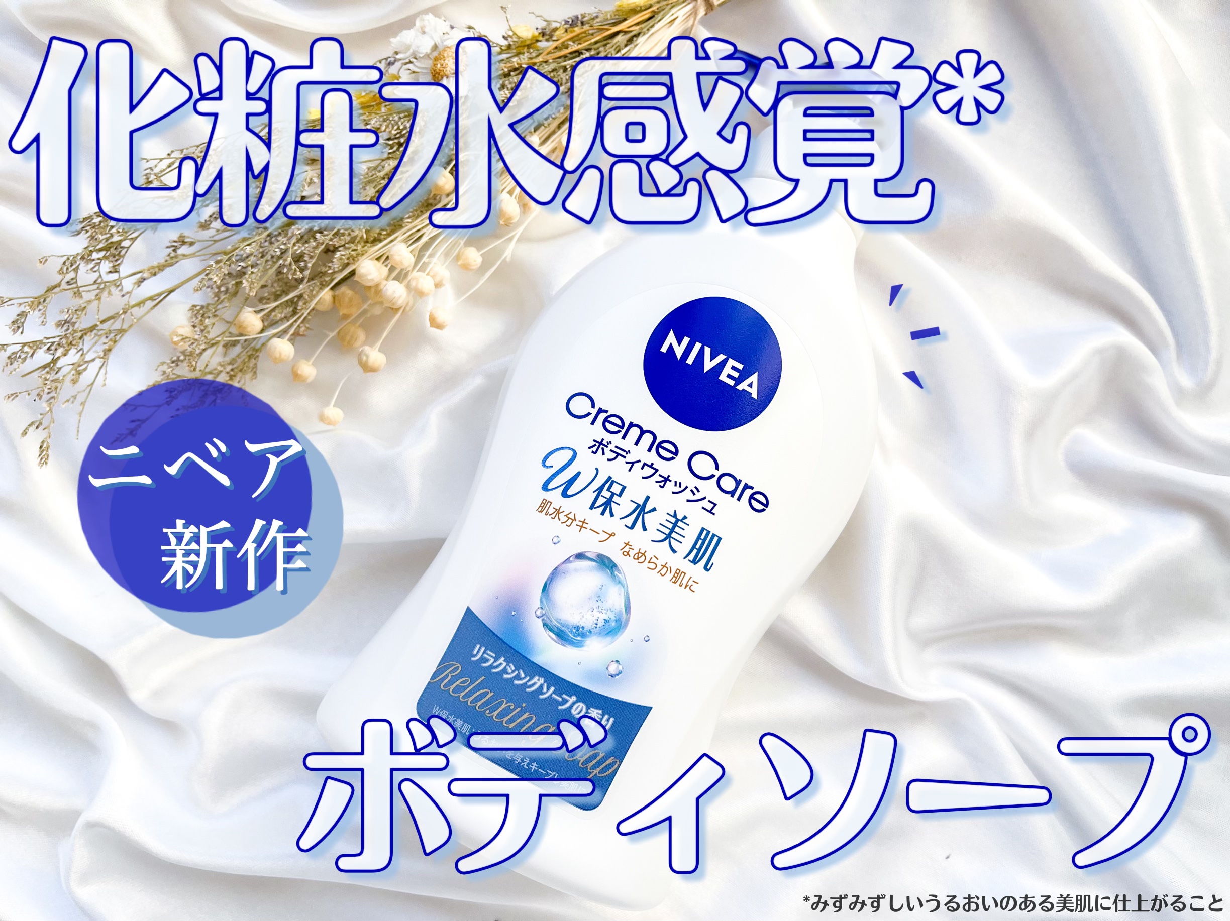 - みずみずしいうるおいのある美肌に洗い上げる“化粧水感覚ボディウォッシュ” リラクシングソープの香り ニベアのスキンケア発想から生まれたW保水美肌*1 処方のボディウォッシュ。 角層保水成分(ヒアルロン酸・コラーゲン)配合:保湿 新処方*2 の素早く泡立つエアリークリーム泡で、肌水分逃さずすっきり洗い、キメの整ったなめらかな美肌に仕上げます。 リラクシングソープの香り、フローラルブーケの香りの2香調 W濃厚保湿*3ライン *1 うるおいを与えキープし美肌に *2 ニベアボディウォッシュにおいて *3 うるおいを与えて、まもる