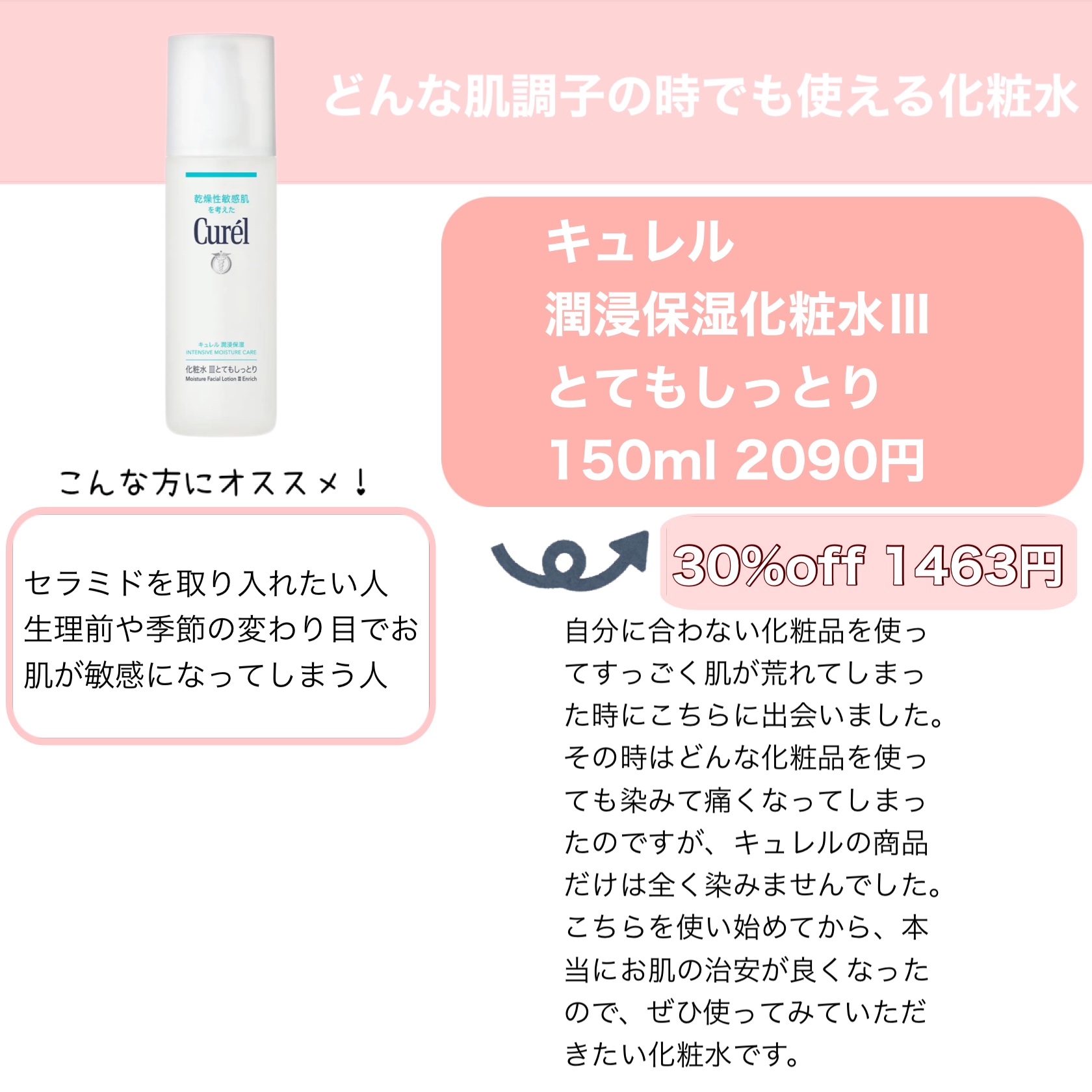 キュレル 潤浸保湿 化粧水 III とてもしっとり | 2,090円〜 |