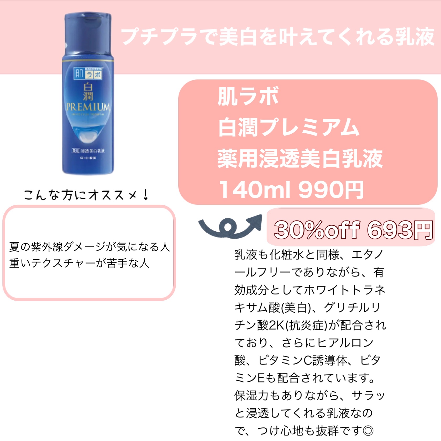 肌ラボ 白潤プレミアム 薬用浸透美白乳液 | 1,100円 |