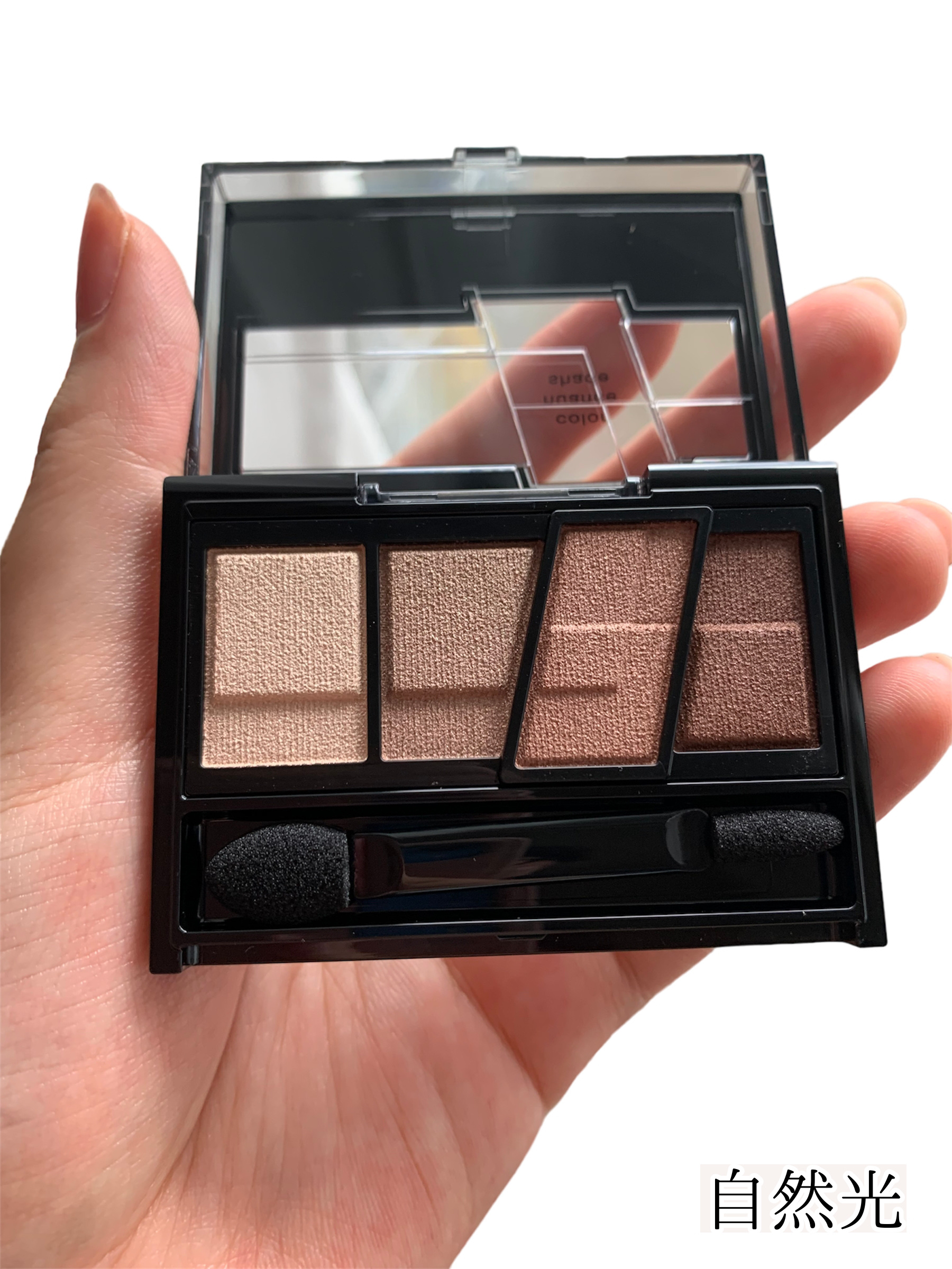 - カラーニュアンスシェードを目尻に入れるだけで目幅を大きく見せ※、抜け感のある明るい大きな目元に仕上るブラウンアイシャドウ。 ブラウン×カラーニュアンスの4色セット。※メイクアップ効果