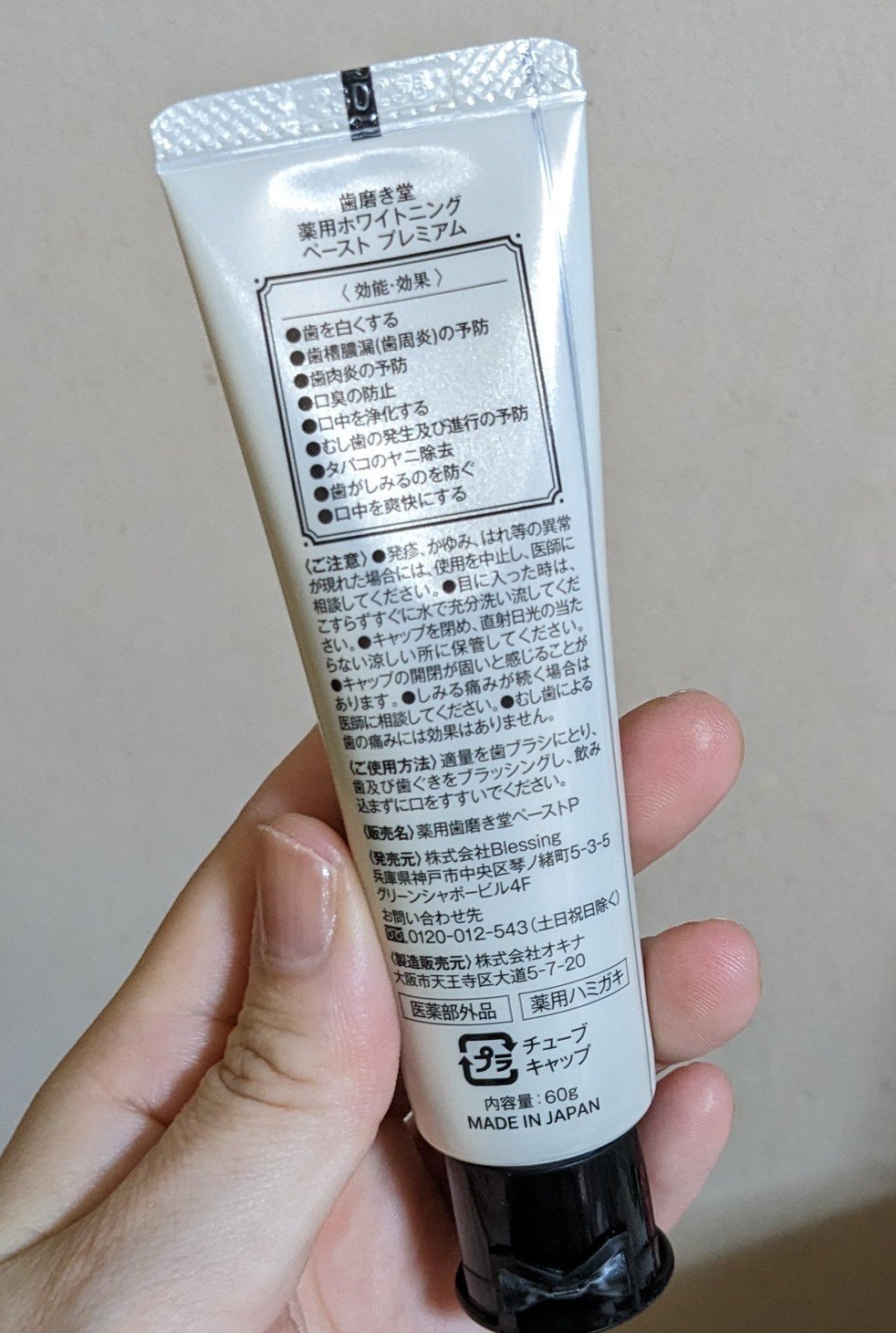 - <60g> ソルビット液、濃グリセリン、精製水、無水ケイ酸、硝酸カリウム、ポリエチレングリコール400、β-グリチルレチン酸、イソプロピルメチルフェノール、リン酸三カルシウム、ヒドロキシアパタイト、ケイ酸カルシウム、香料(フレッシュミントタイプ)、キシリット、サッカリンナトリウム、カルボキシメチルセルロースナトリウム、キサンタンガム、ポリオキシエチレン硬化ヒマシ油、ラウロイルサルコシンナトリウム、ヤシ油脂肪酸アミドプロピルベタイン液、酸化チタン、l-メントール <トライアル 20g> ソルビット液、濃グリセリン、精製水、無水ケイ酸、硝酸カリウム、ポリエチレングリコール400、β-グリチルレチン酸、イソプロピルメチルフェノール、リン酸三カルシウム、ヒドロキシアパタイト、ケイ酸カルシウム、香料(フレッシュミントタイプ)、キシリット、サッカリンナトリウム、カルボキシメチルセルロースナトリウム、キサンタンガム、ポリオキシエチレン硬化ヒマシ油、ラウロイルサルコシンナトリウム、ヤシ油脂肪酸アミドプロピルベタイン液、酸化チタン、l-メントール
