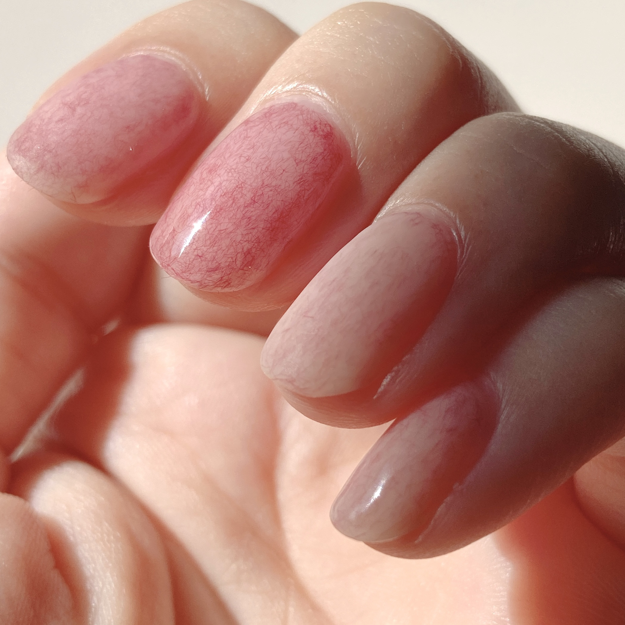 ローズブラウンだけこの中だとすこし透明感が低い色 落ち着いたカラーで使いやすいです 他2つはクリア度が高い色ですベースカラーが透明のままだと 自爪の色が透けてもっとピンクぽさが強く出ます ベース:セリア ピールオフベース トップ:ネイルタウン irogel グロッシートップ (ノンワイプトップ)